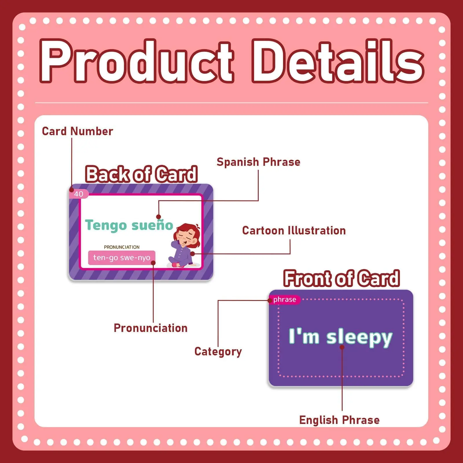 ·Attractive Spanish learning game: With delicate design and popular colors, our Spanish conversational phrase flash cards are an ideal addition to your Spanish learning tool. Spanish learning cards engage visual and auditory senses and can be used in various ways, such as self-quizzing, pair work, or even as a game with friends, making the learning process enjoyable and less intimidating.
