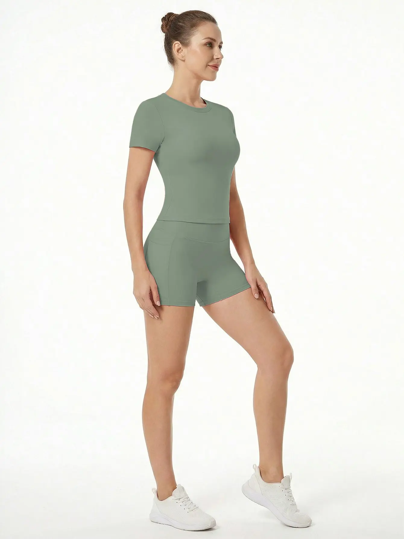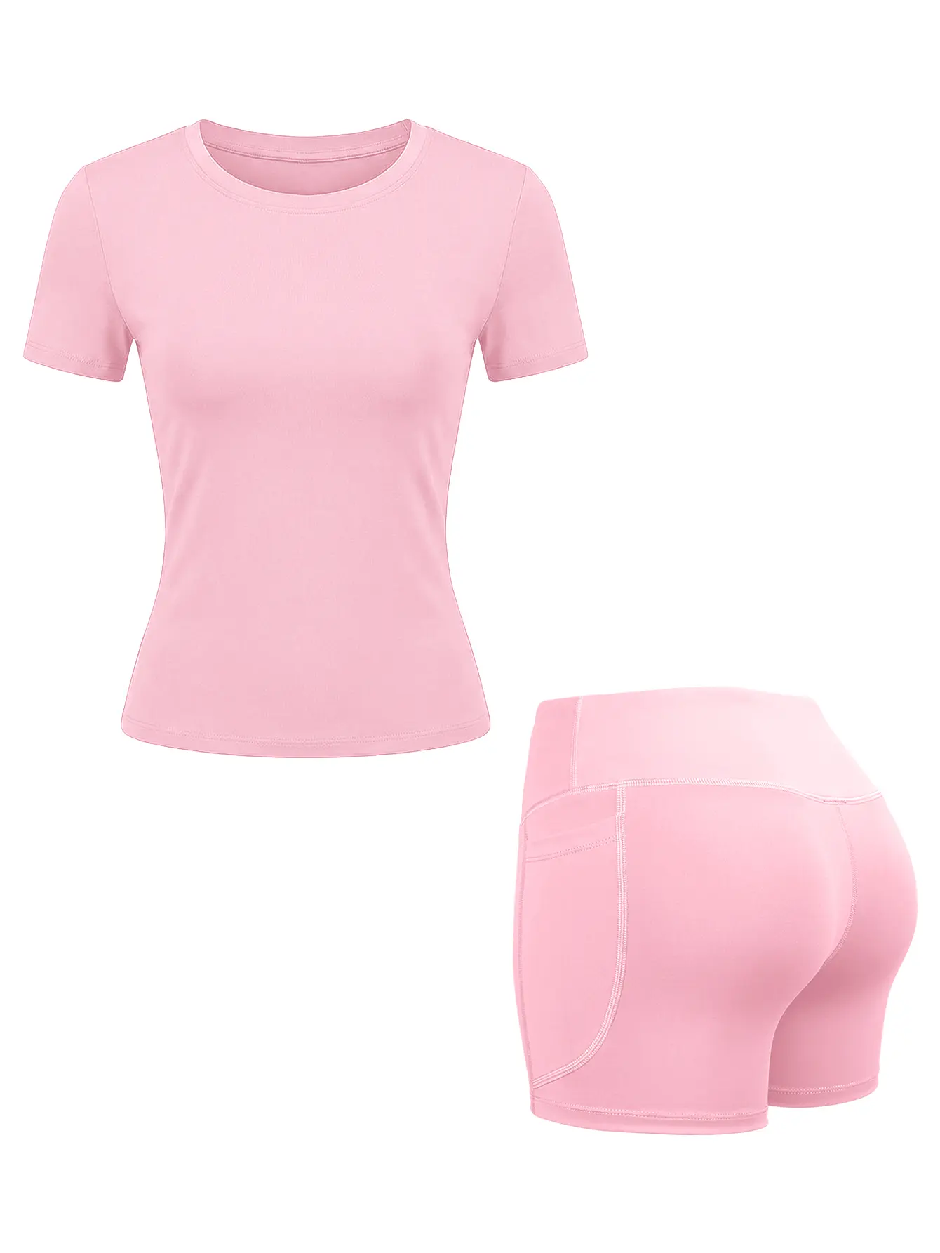 ·Two-Piece Set: Includes a high-end t-shirt and high-waisted fitted shorts.