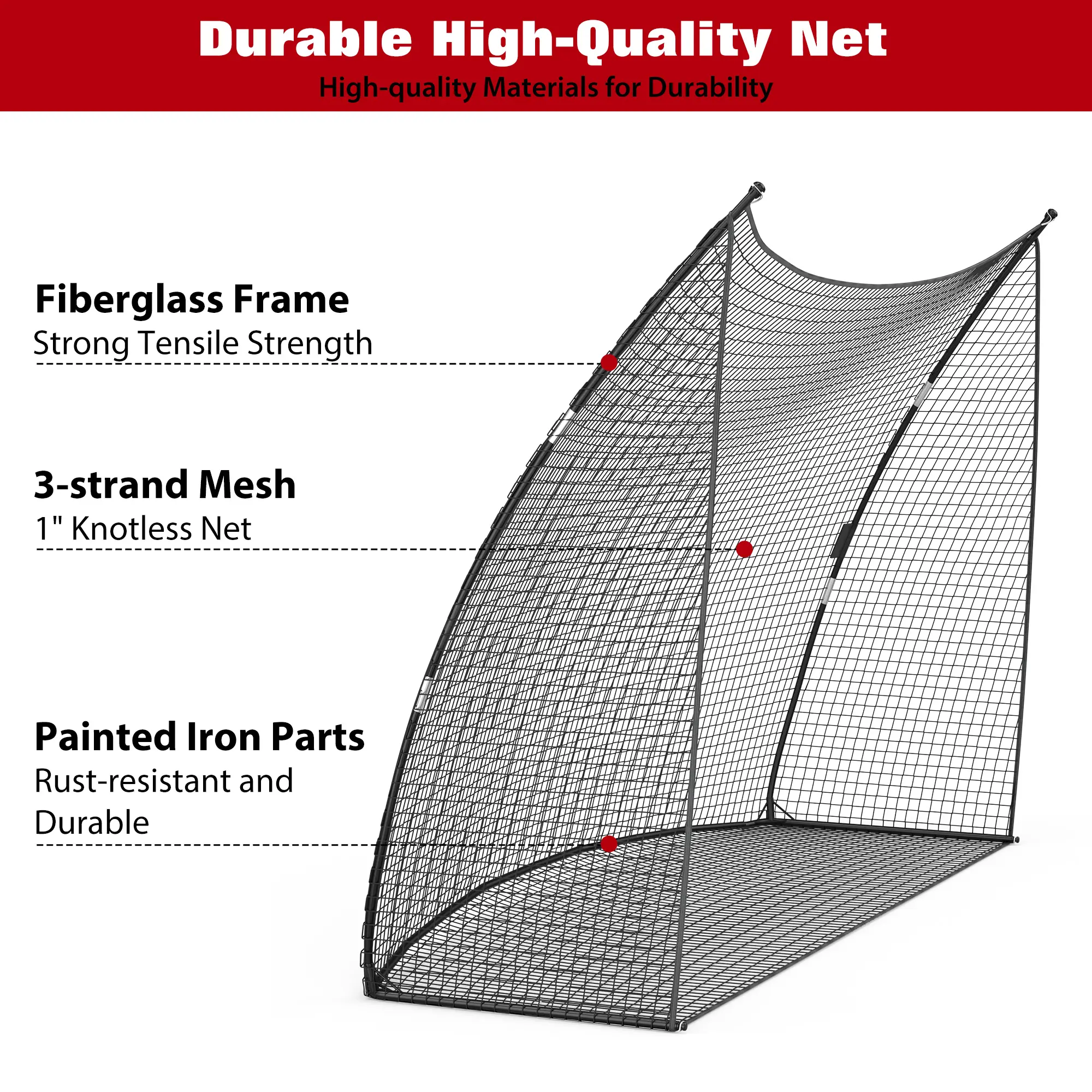 Create your personal driving range anywhere with this 10x7x3 ft golf practice net. Built for durability with a solid metal base and reinforced fiberglass frame, it withstands powerful shots. The efficient ball return system saves time, while quick, tool-free assembly and a carry bag make it easy to use anywhere, indoors or out. Perfect for golfers of all levels.