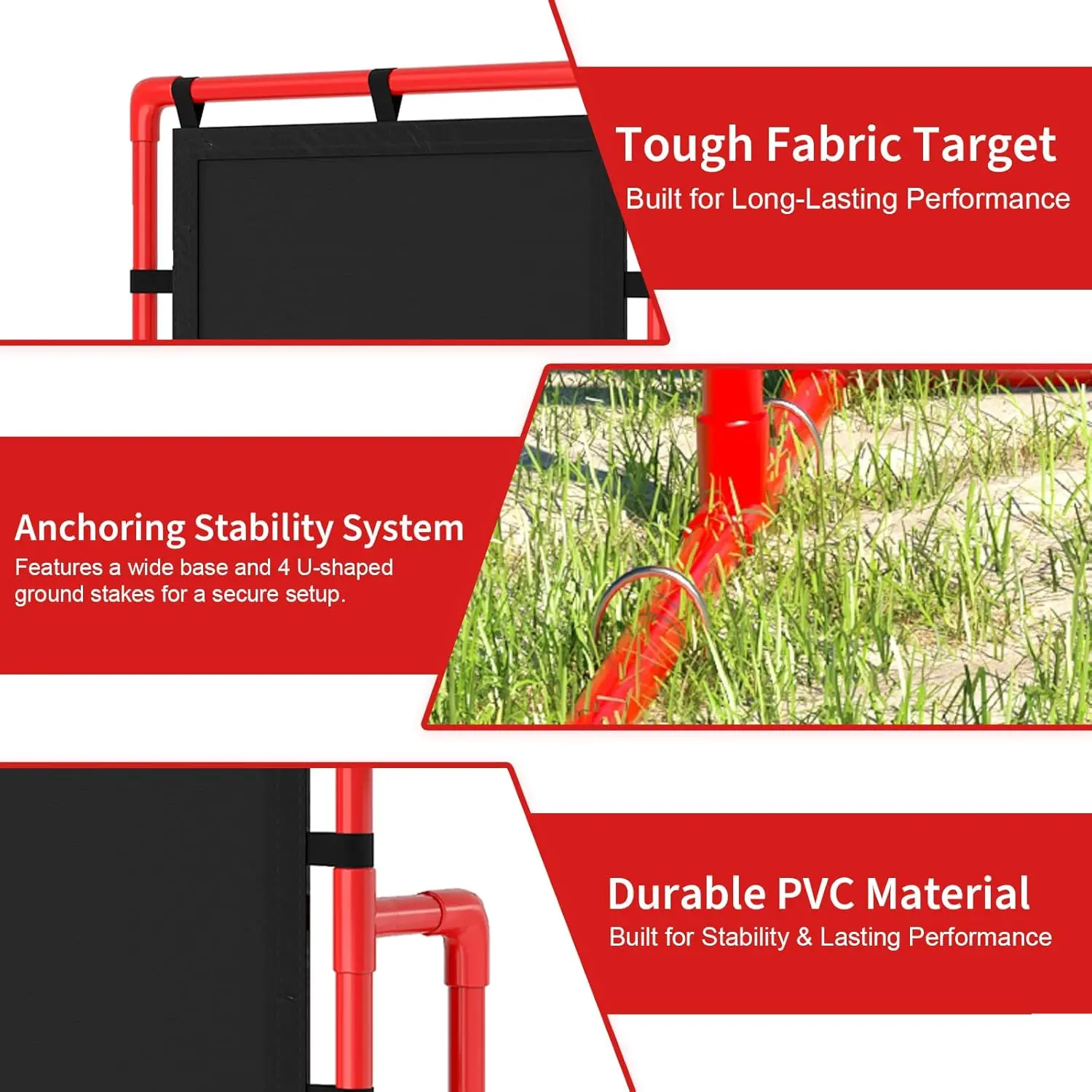 【Durable & Stable Construction】Built from tough PVC that resists tipping on impact, combined with a tear-resistant fabric goaldesigned to last through countless throws.