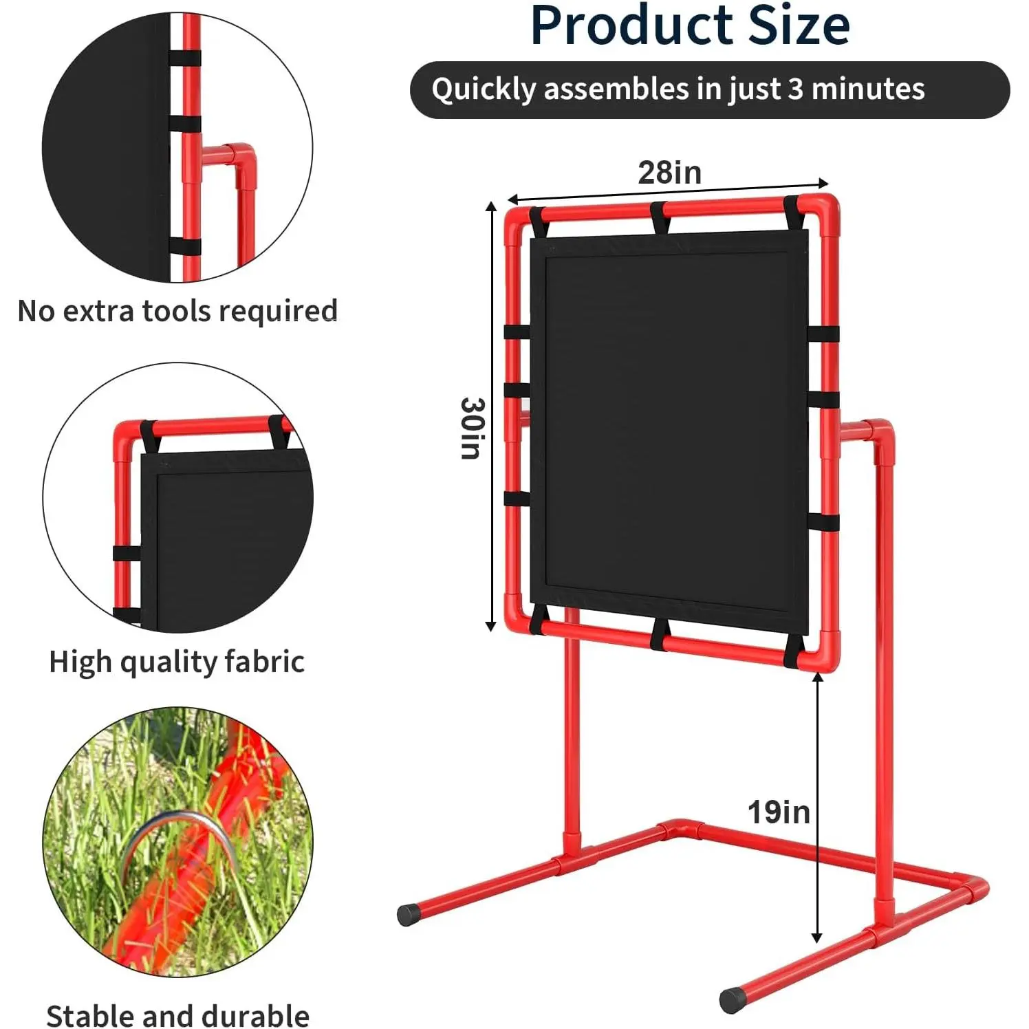 【Ideal for Plastic Ball Baseball Games】This Universal Strike Zone Goal features a large 30 in x 28 in area, perfect for backyard games like Wiffle Ball and Blitzball. The outer frame measures 30"x28", with a fabric goalof 27"x23".