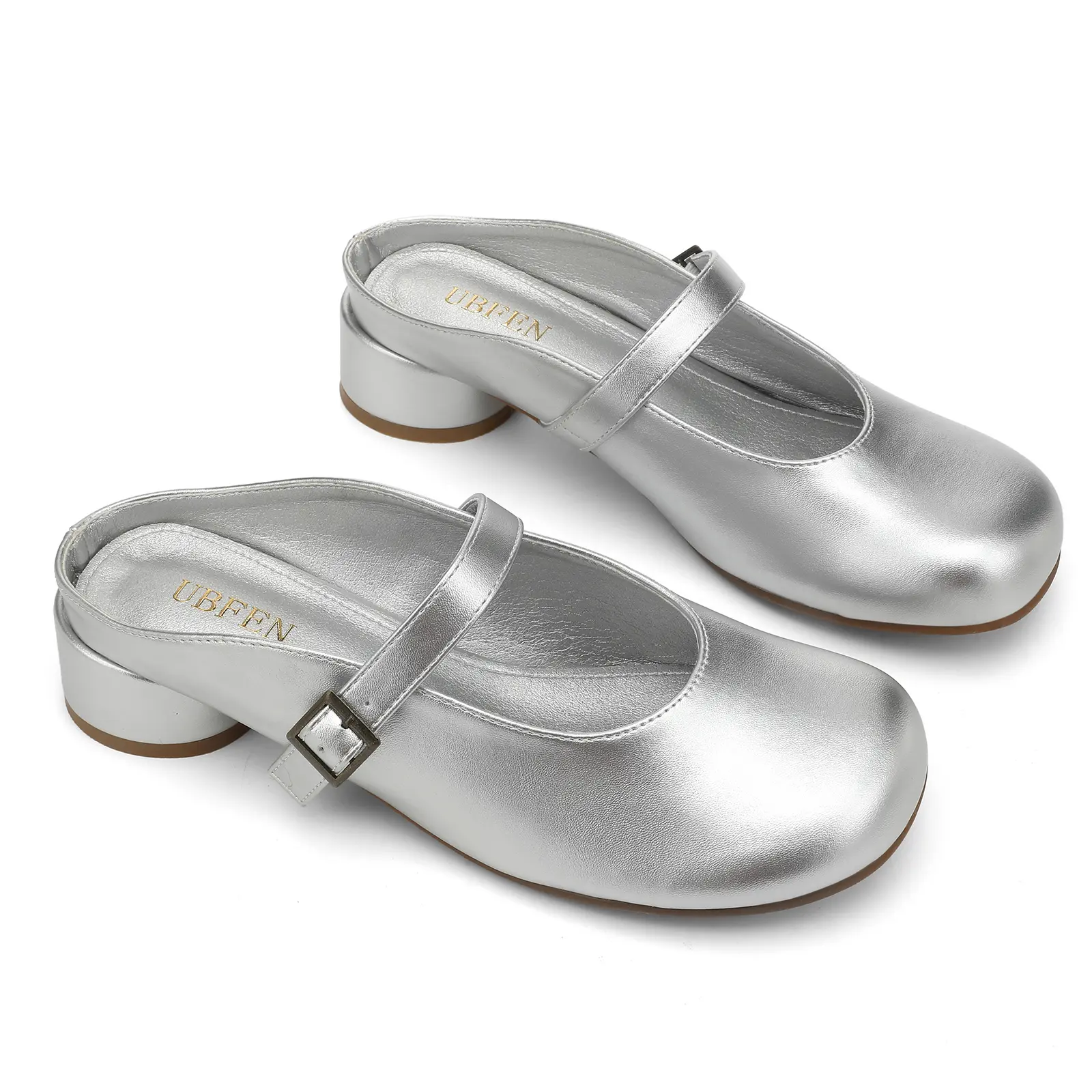 UBFEN Women's Mary Jane Mules Slip-On Chunky Low Heel Round Toe Comfort Dress Shoes