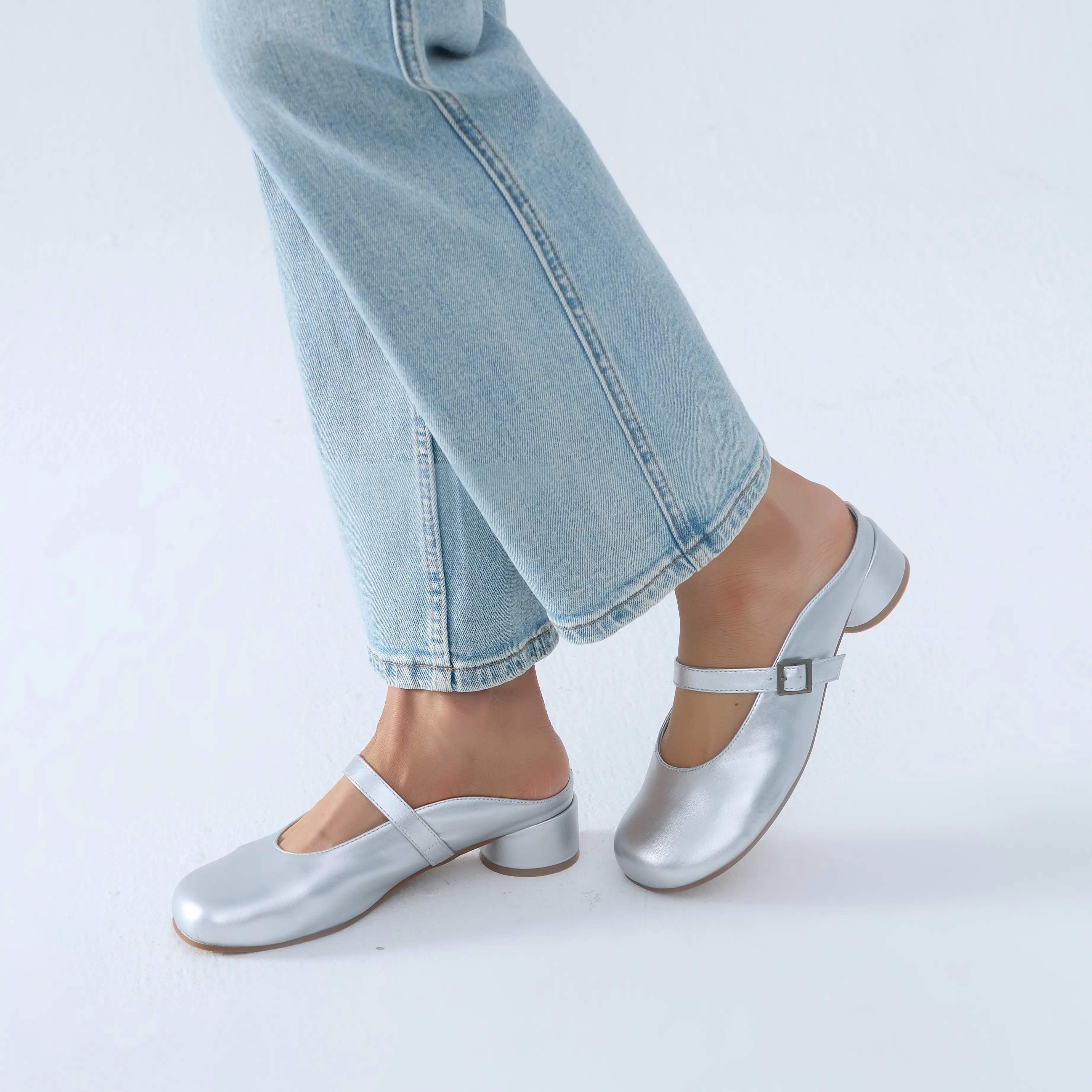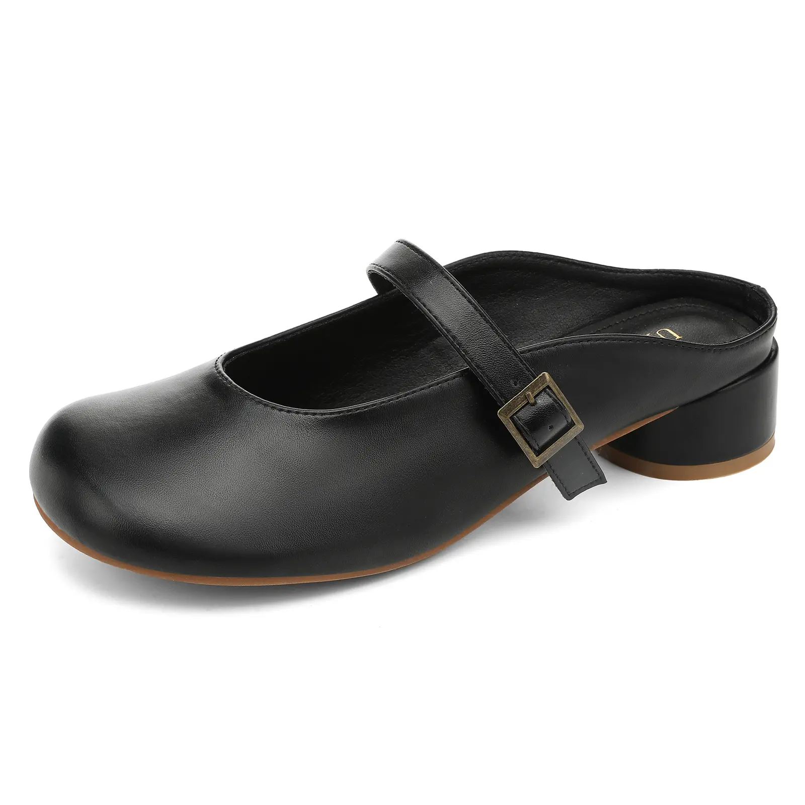 Women's buckle mules: Adjustable strap for secure fit, sleek slip-on design for effortless daily style.