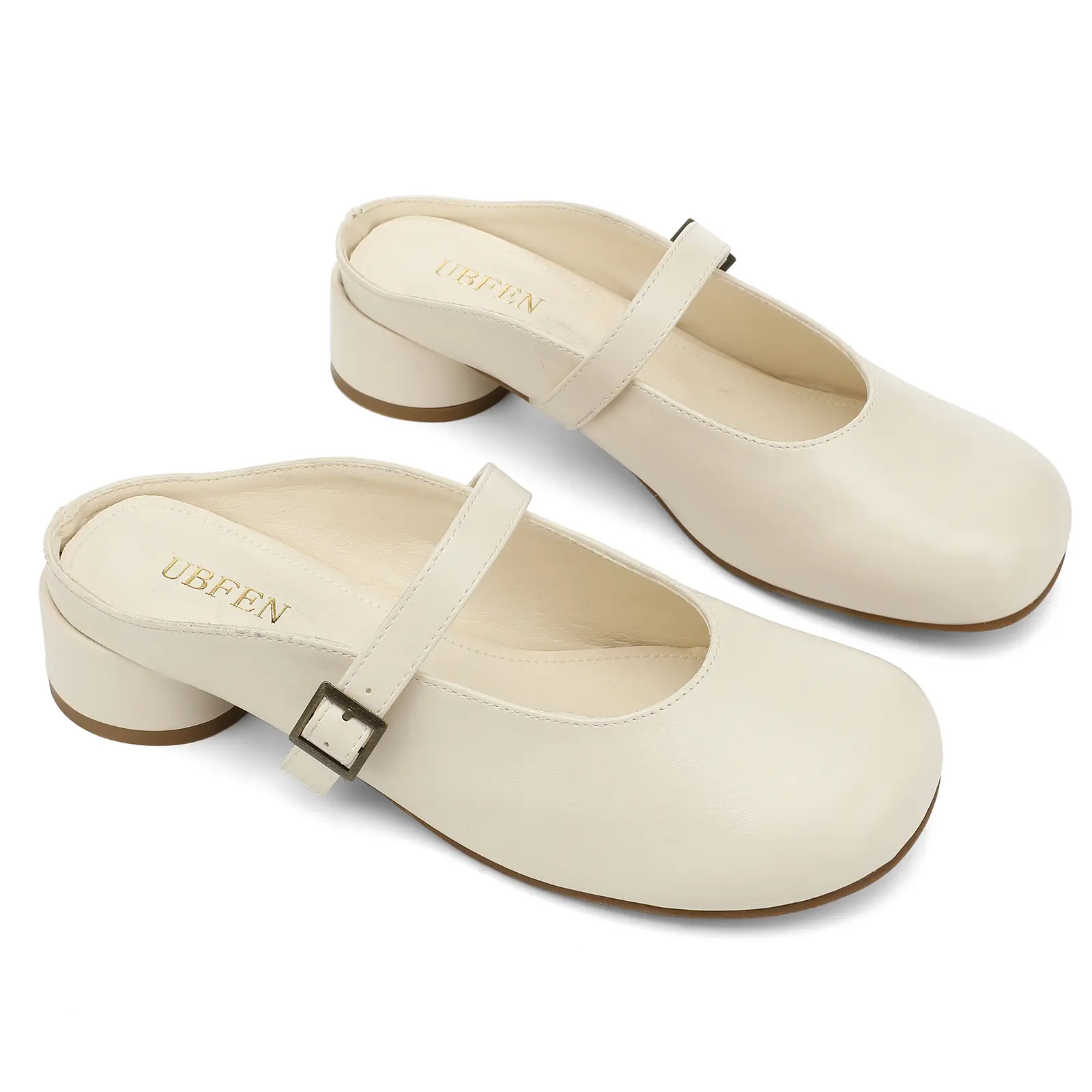 5. UBFEN Women's Mary Jane Mules Slip-On Chunky Low Heel Round Toe Comfort Dress Shoes