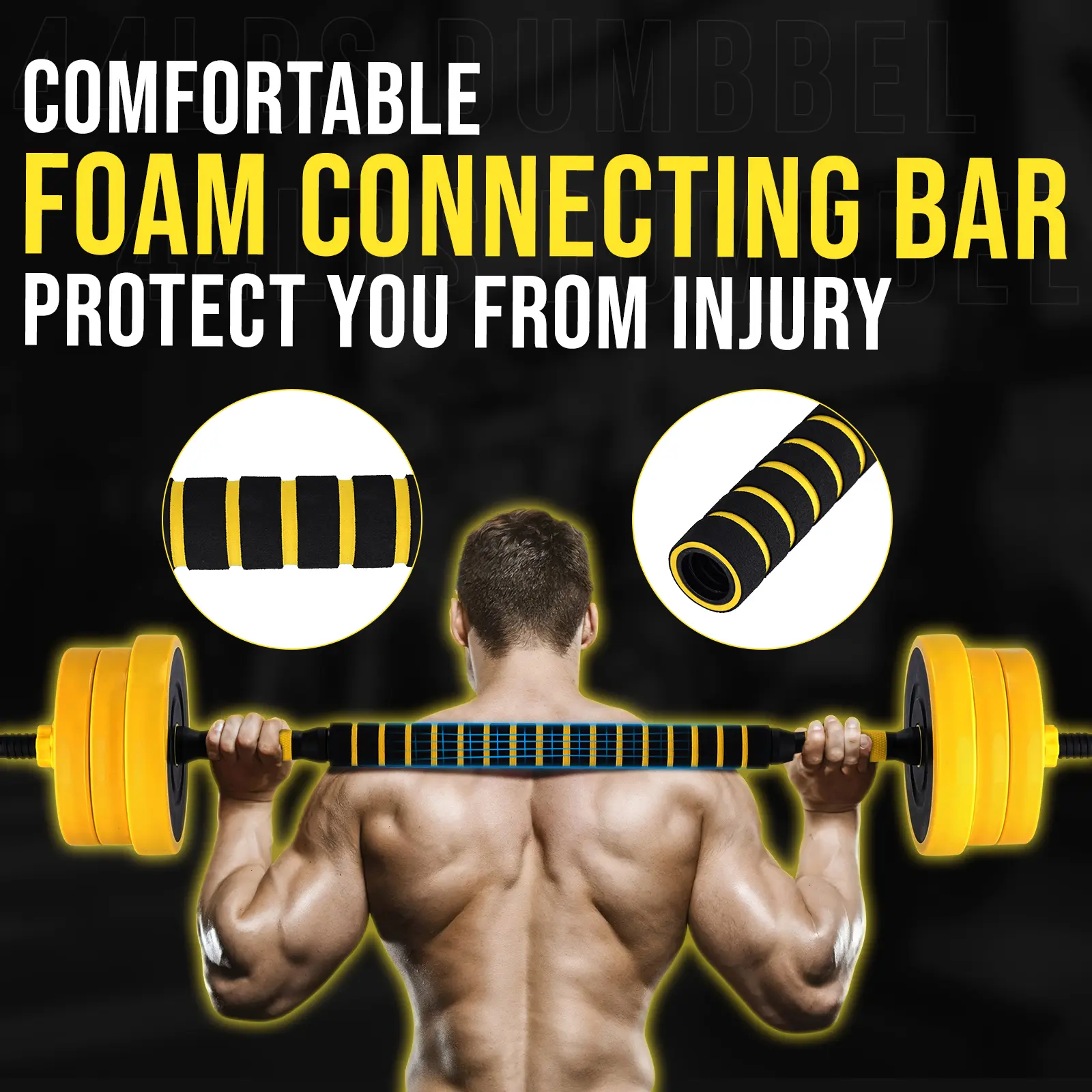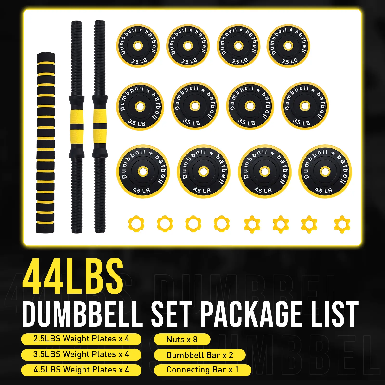 44 LB Adjustable Dumbbell Set,Adjustable Dumbbell Weights Strength Training Equipment Work As Dumbbells and Barbells for Home Gym, Yellow