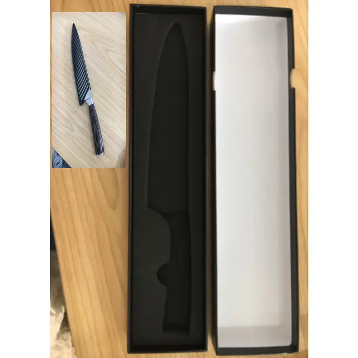 Tips: The blade is 7CR17 stainless steel, the surface of the laser Damascus pattern, very beautiful, good workmanship, razor sharp, keep your kitchen away from the blunt knife, and enjoy ypur kitchen life!