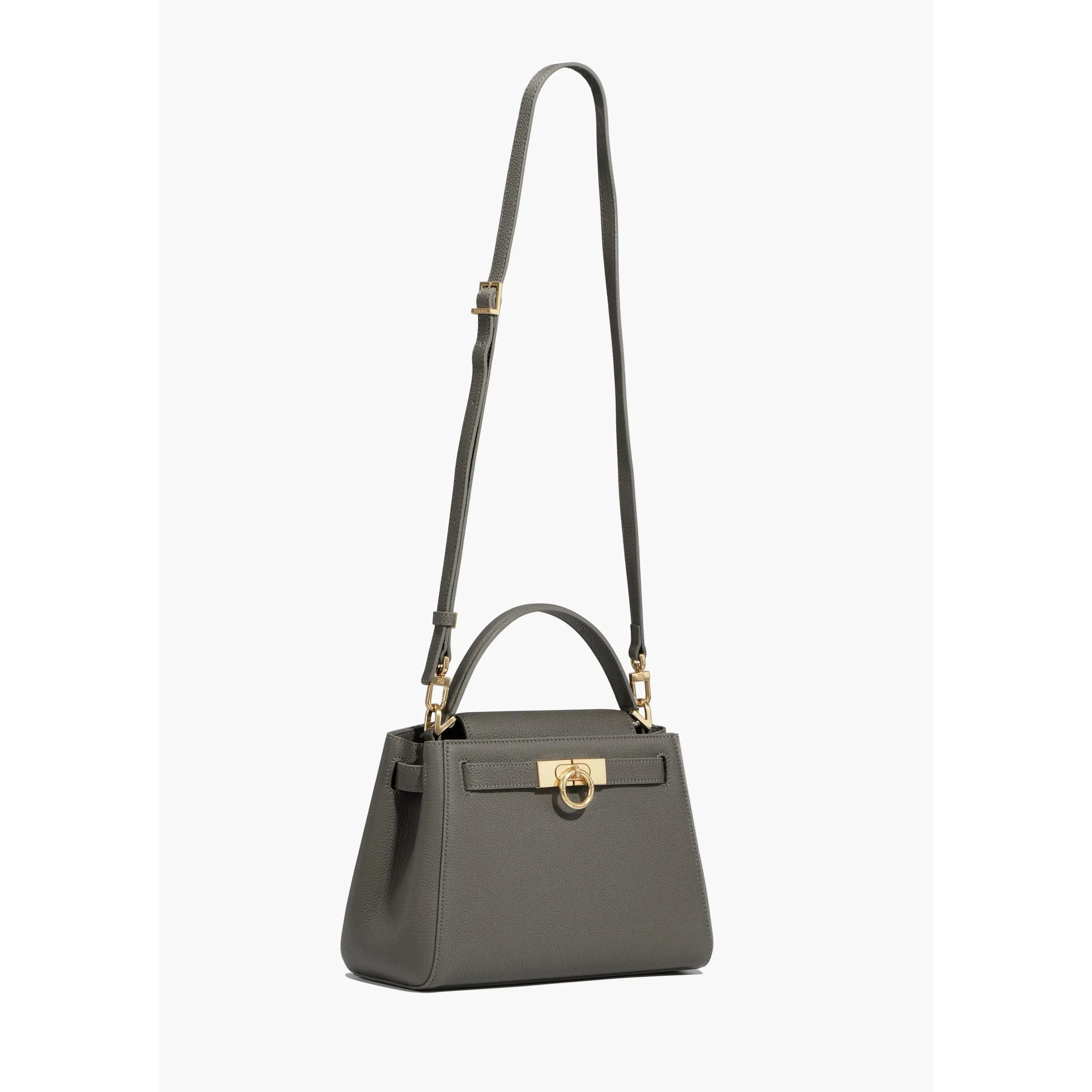 I am not a big Hermes lover, but I do find the sangles to be appealing in the esthetic look of the bag. The leather on this bag is very luxurious and the leather lining is high quality. I am a sucker for leather lined bag. It is fairly easy to get int, has a zip compartment for my phone and fits quite a lot in it. The shoulder strap is positioned on the sides of the bag, not cross attached form the inside. I absolutely detest a shoulder strap that is not on the sides of the bag because the carry is not comfortable and does not evenly distribute of the weight of the bag. This bag has the strap attached like the bag God intended and has a separate metal clip dedicated to the cross-body strap. The hardware is shiny and beautiful. Overall, this is an excellent value for the money and can hold its own against the big boys. I ask you, why do the big designers charge so much? This company can make a beautifully crafted bag with high quality leather at a fraction of the price. I would highly recommend this beauty.