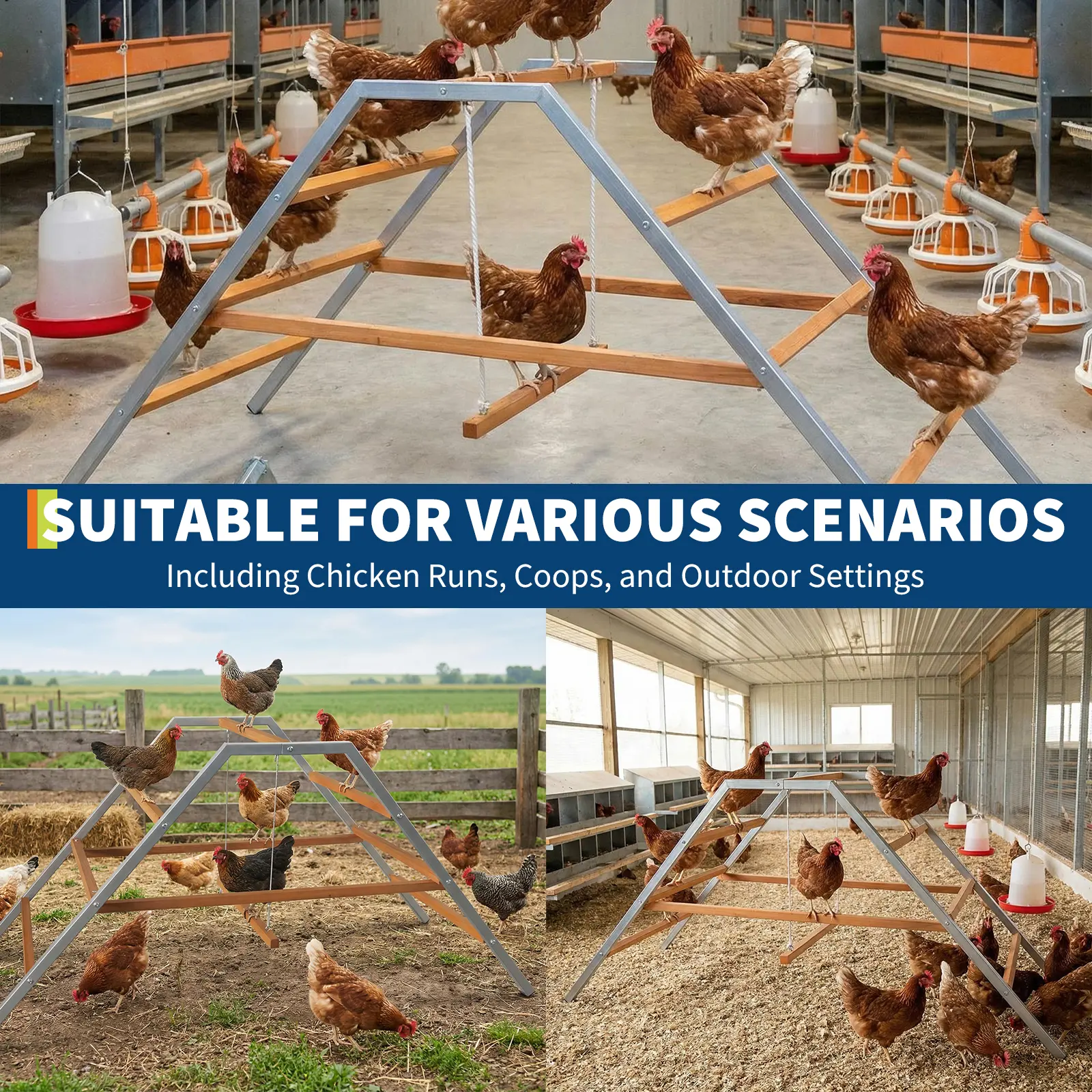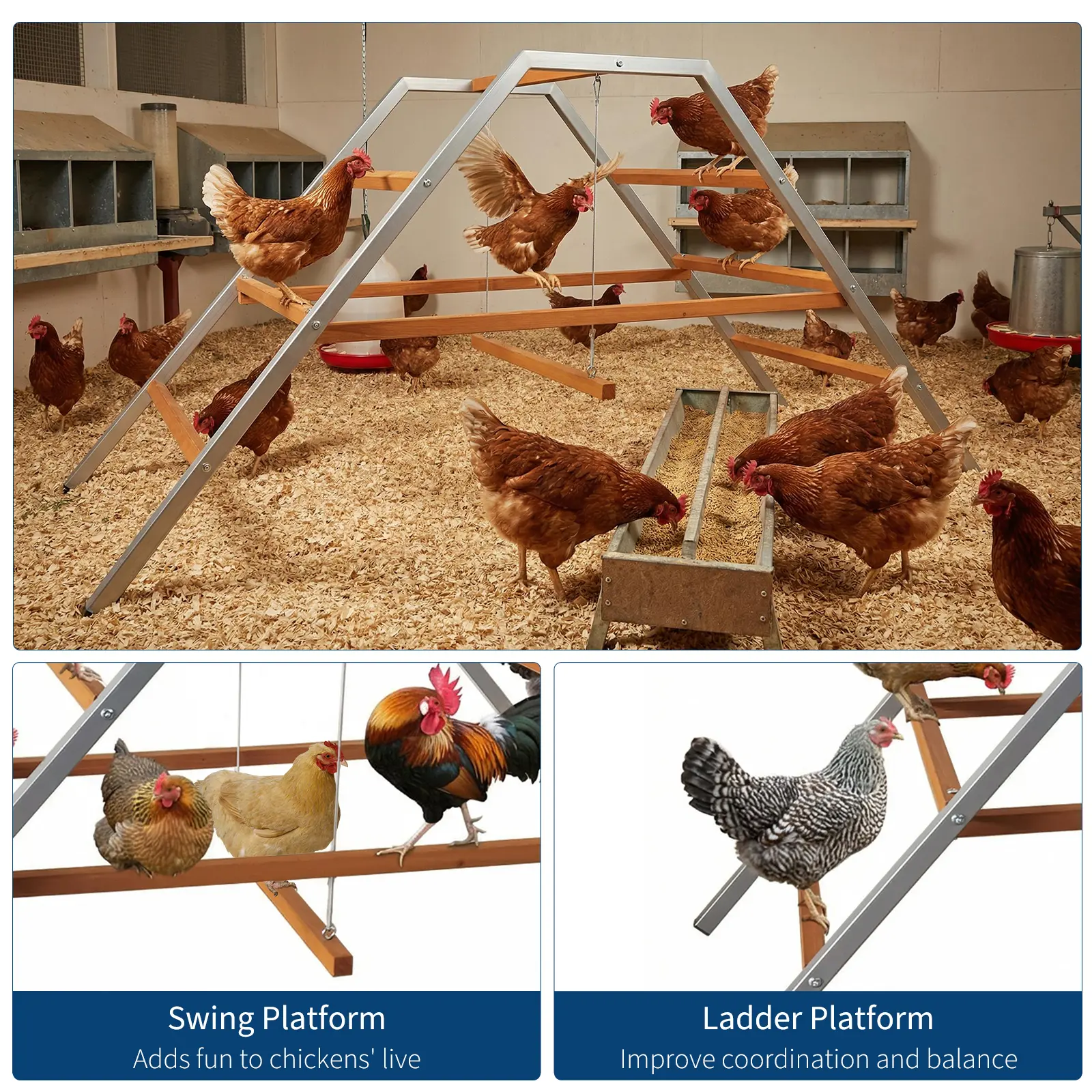 ·3.Integrated swing and ladder encourage healthy exercise, play, and natural behaviors for happier, more active chickens.