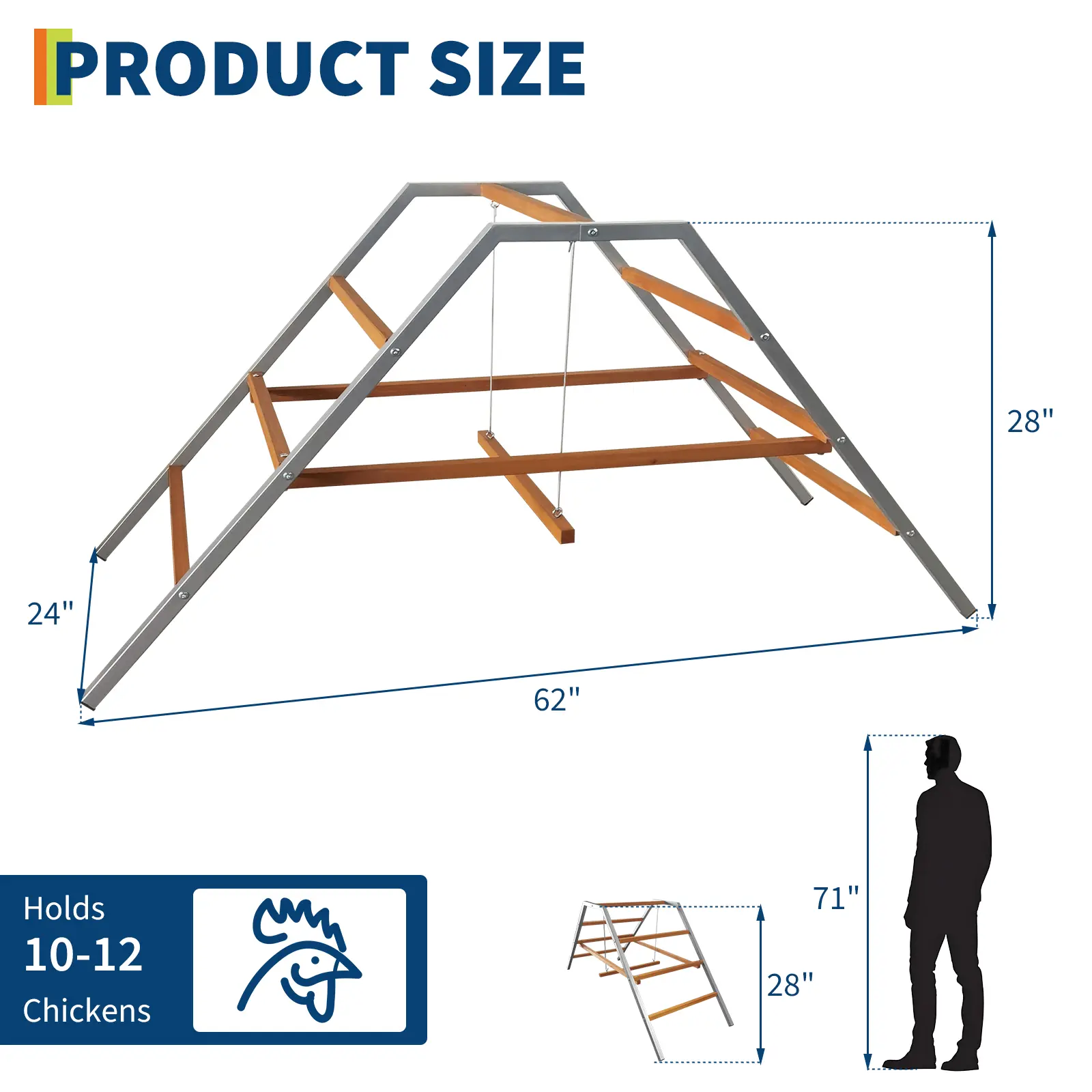 ·2.Spacious multi-level design accommodates 10-12 chickens, promoting natural roosting and reducing competition for perching space.