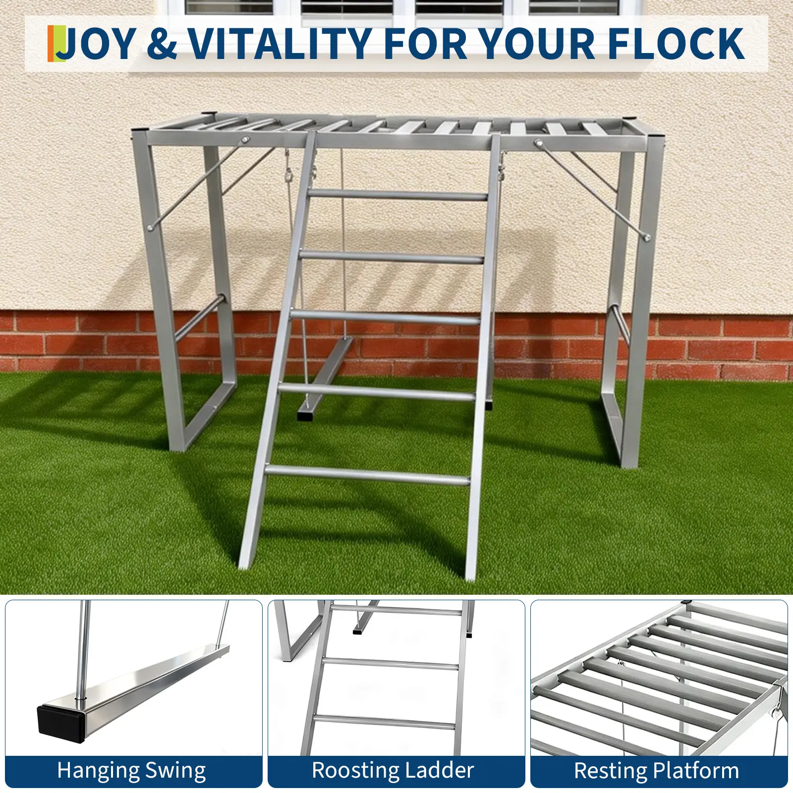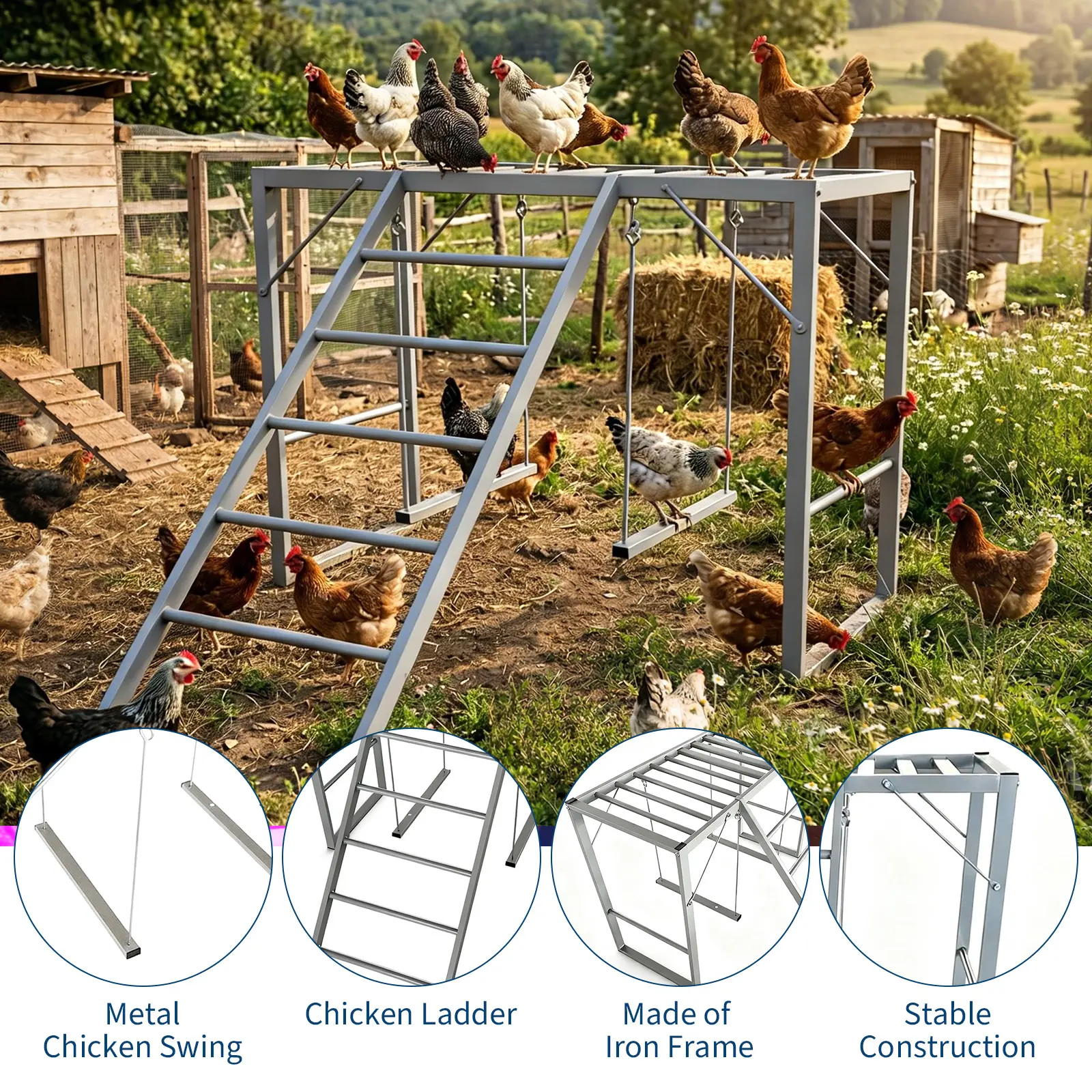·3.Promotes natural behaviors—chickens perch, climb, and swing for improved health, reduced stress, and enhanced egg quality.