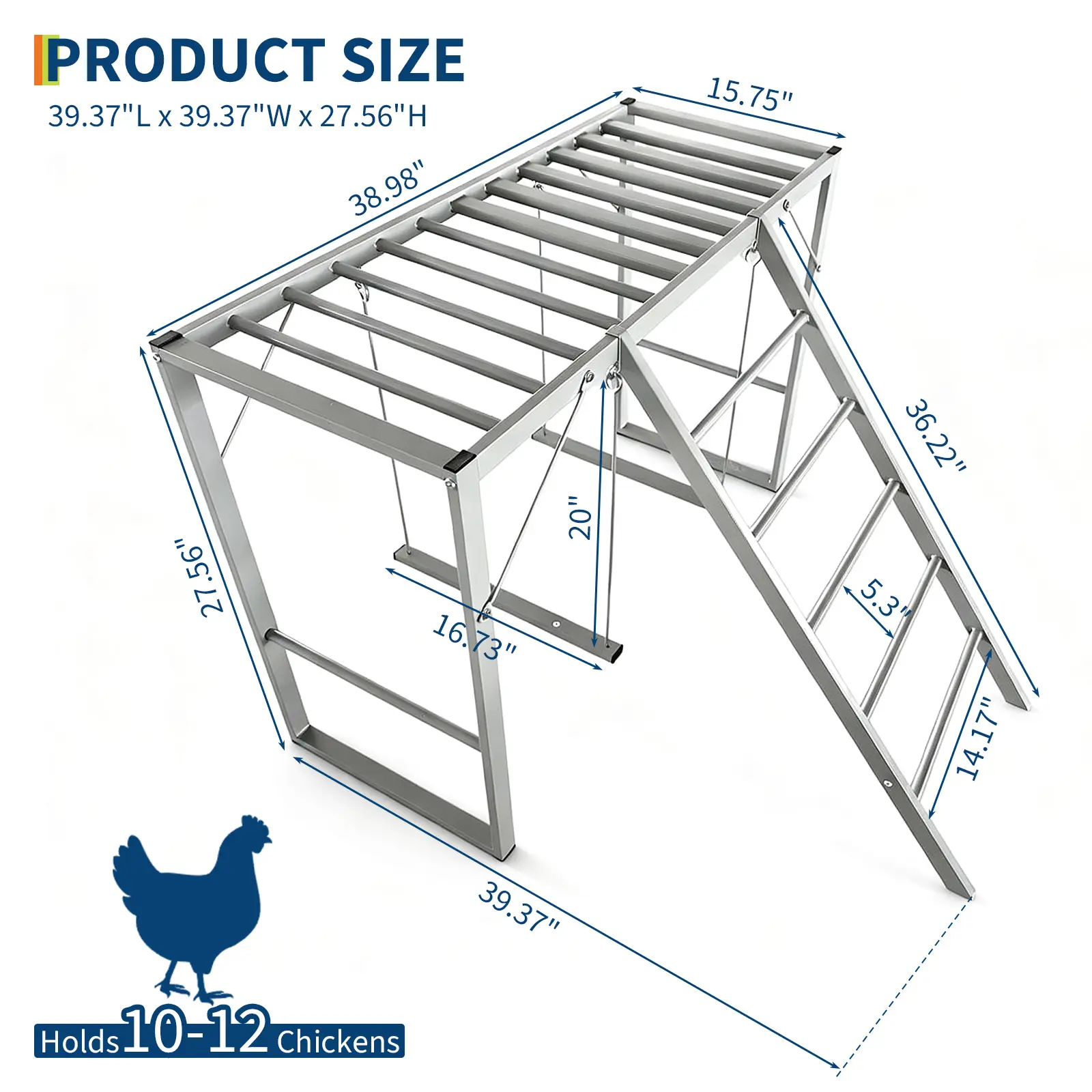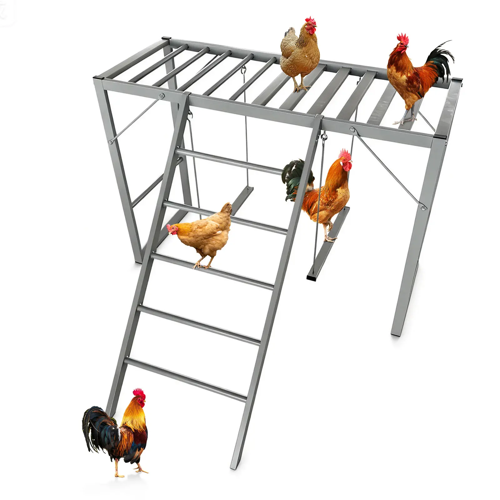 ·1.Heavy-duty carbon steel chicken perch with waterproof coating, built to withstand sun, rain, and snow for long-lasting outdoor use.