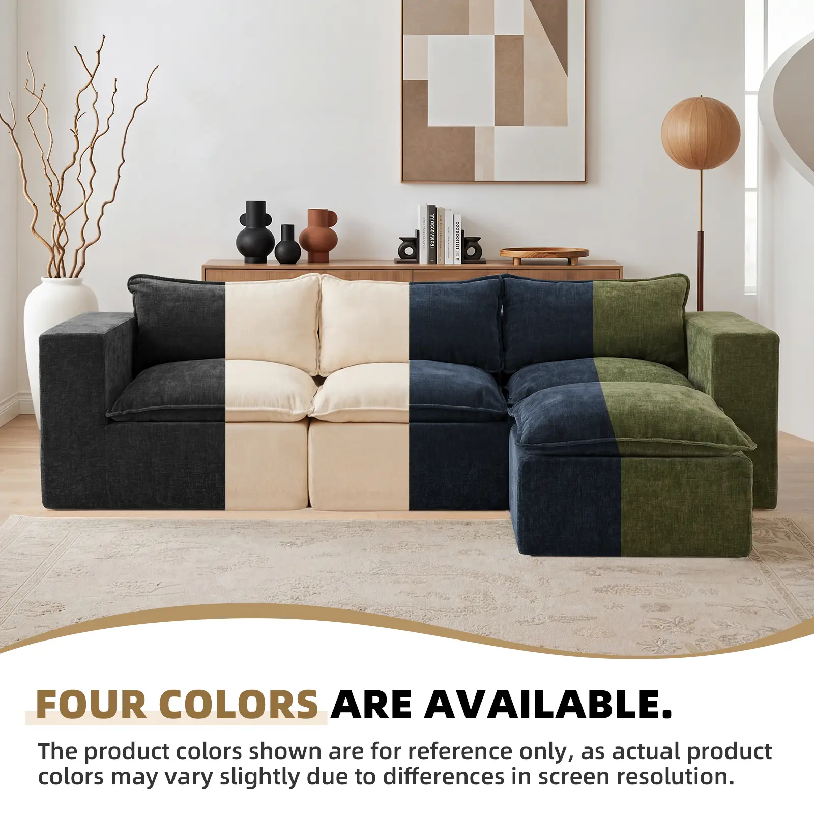 Perfect for living rooms, apartments, bedrooms, guest rooms, or kids’ spaces. Each module works on its own, letting you reconfigure the layout as your space or needs change.The durable construction makes it family-friendly, while the spacious design works great as a main lounge sofa or extra seating for guests.