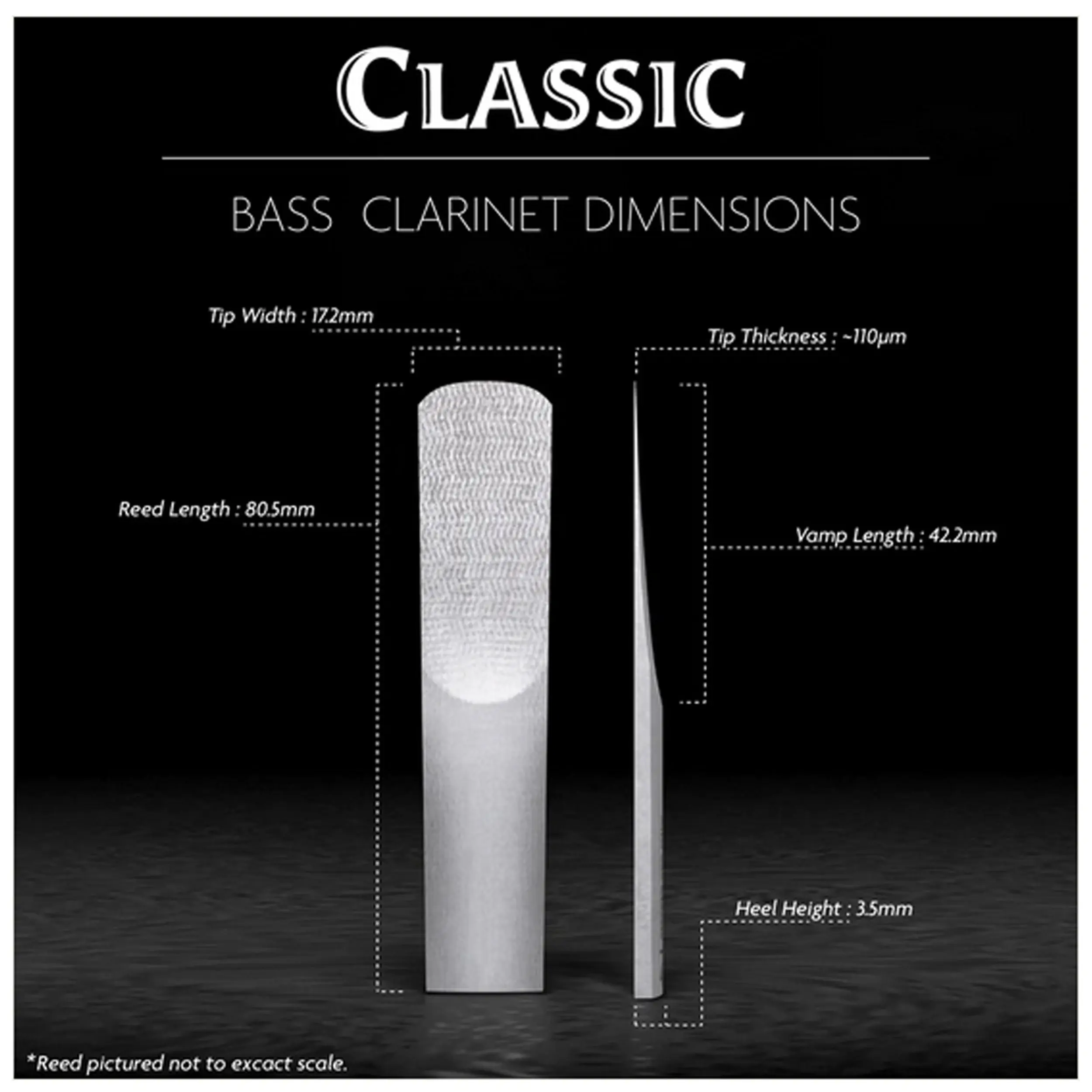 A thick reed most appropriate for a traditional or classical setup. The Classic for Clarinet has a thicker tip than other Légère clarinet reeds and is designed to produce a darker sound. This reed is recommended for beginners though it is appreciated by advanced players seeking a darker sound.