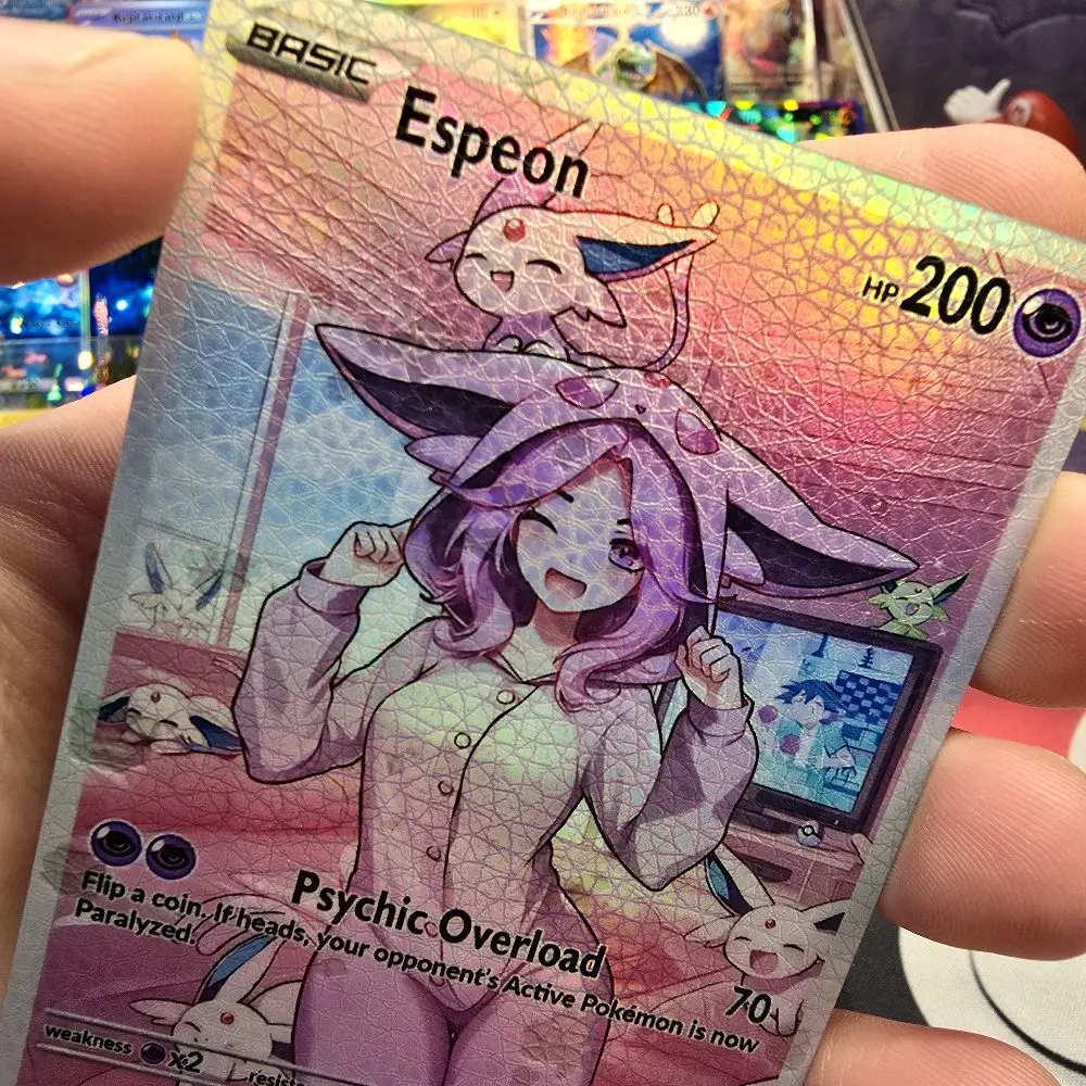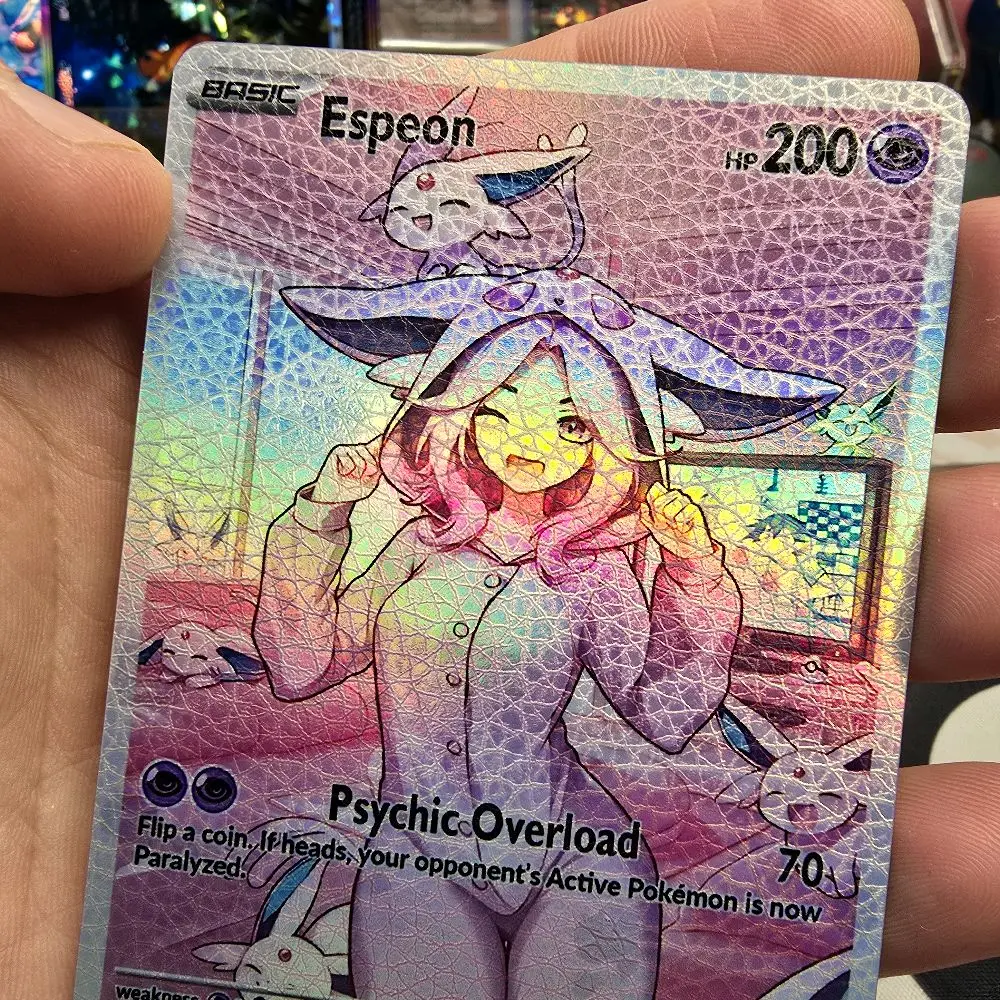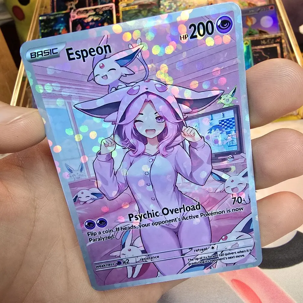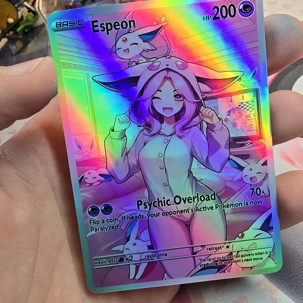 Part of the Cozy Slumber Series! This custom physical card features Eapeon in a relaxed, sleepover-themed art style. Finished with a premium Rainbow Holo or Confetti Holo that catches the light perfectly.