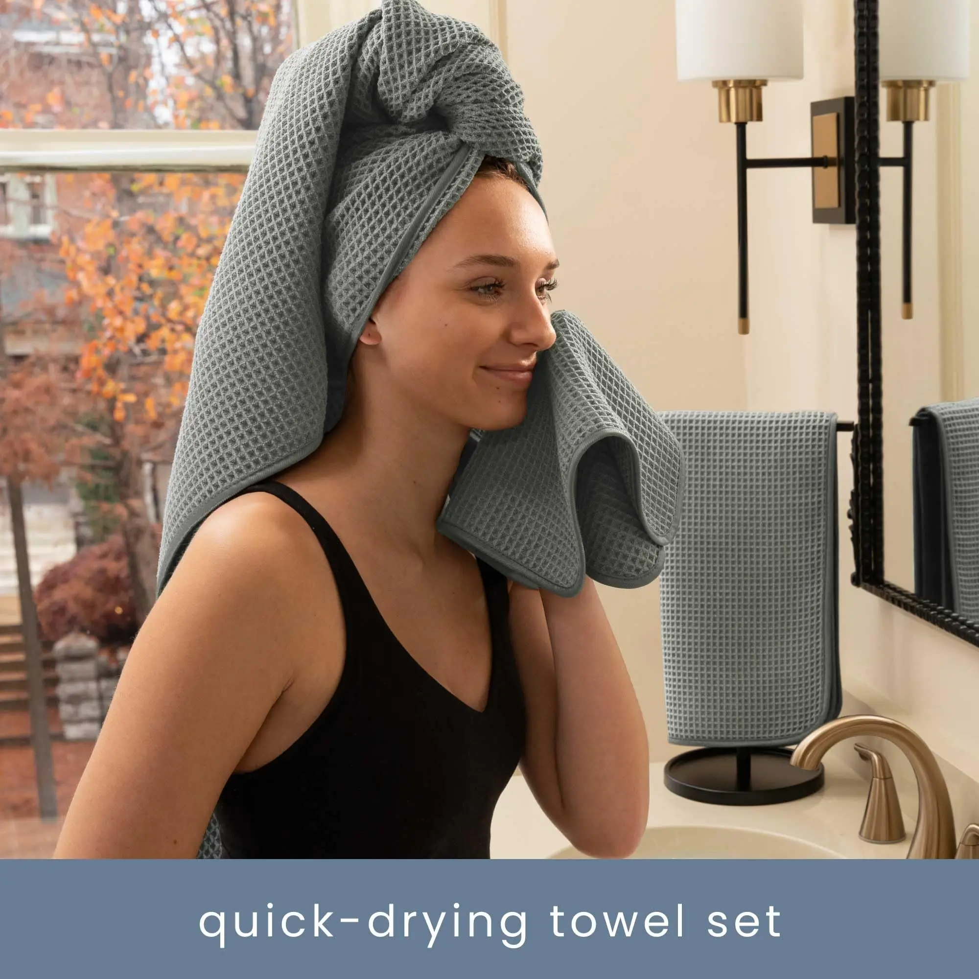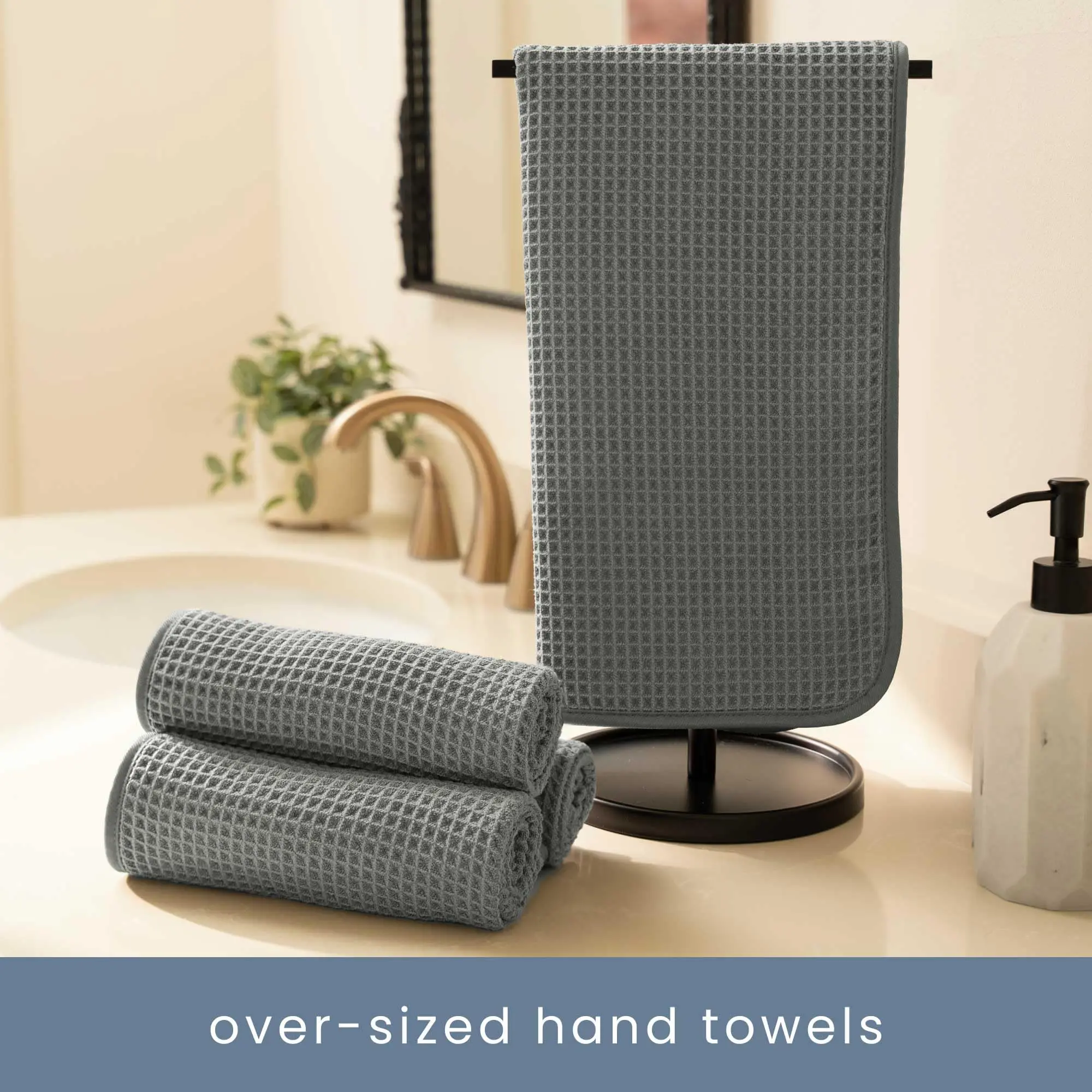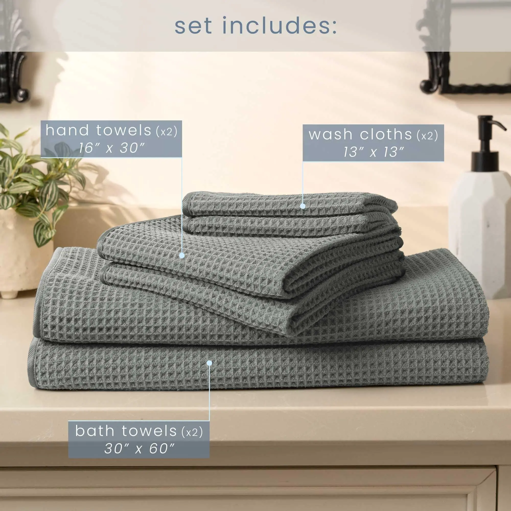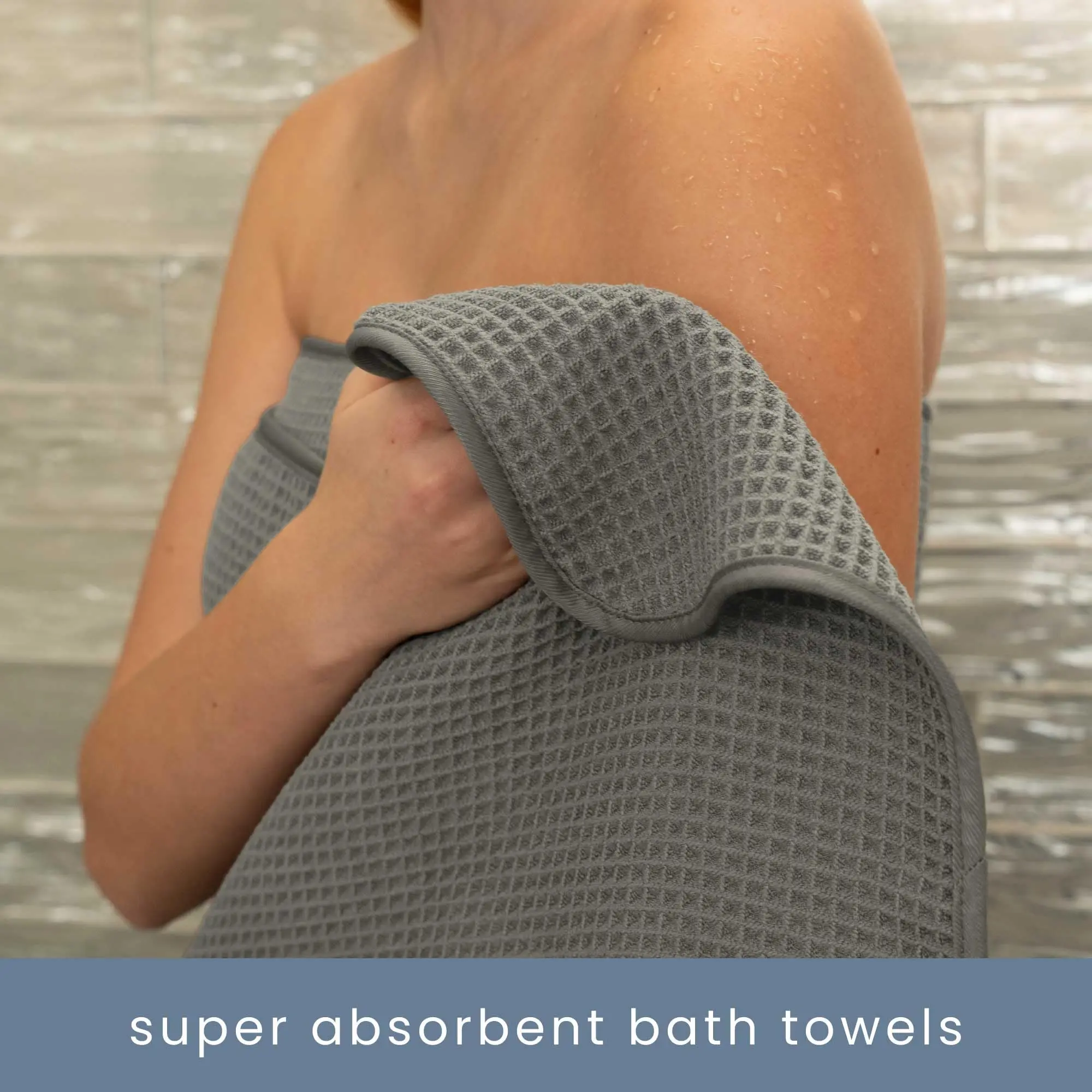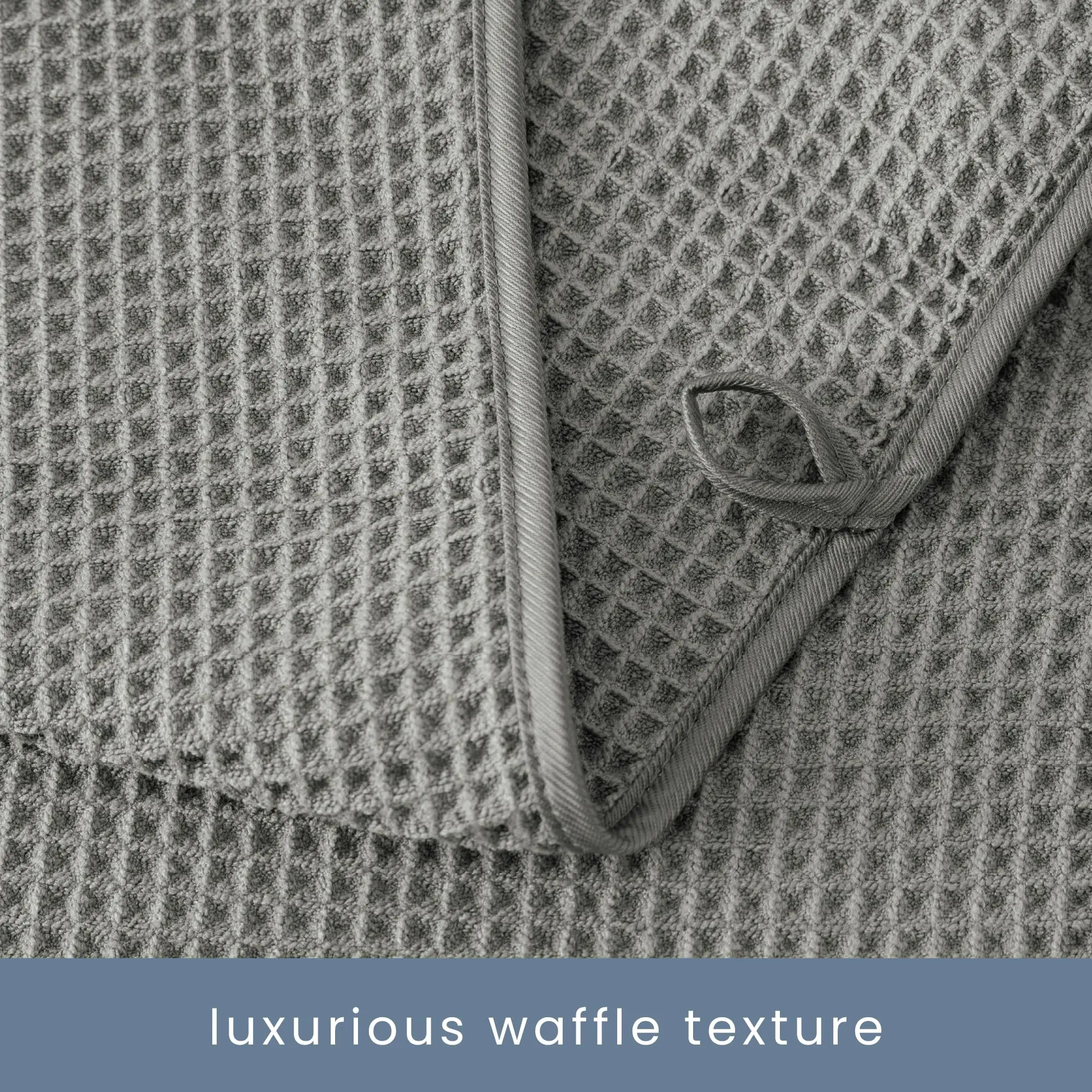 ·The towel sets are machine washable and made for repeated use; to protect the appearance of the luxurious waffle towels, please do not wash with items that have hardware that can catch and pull the threads