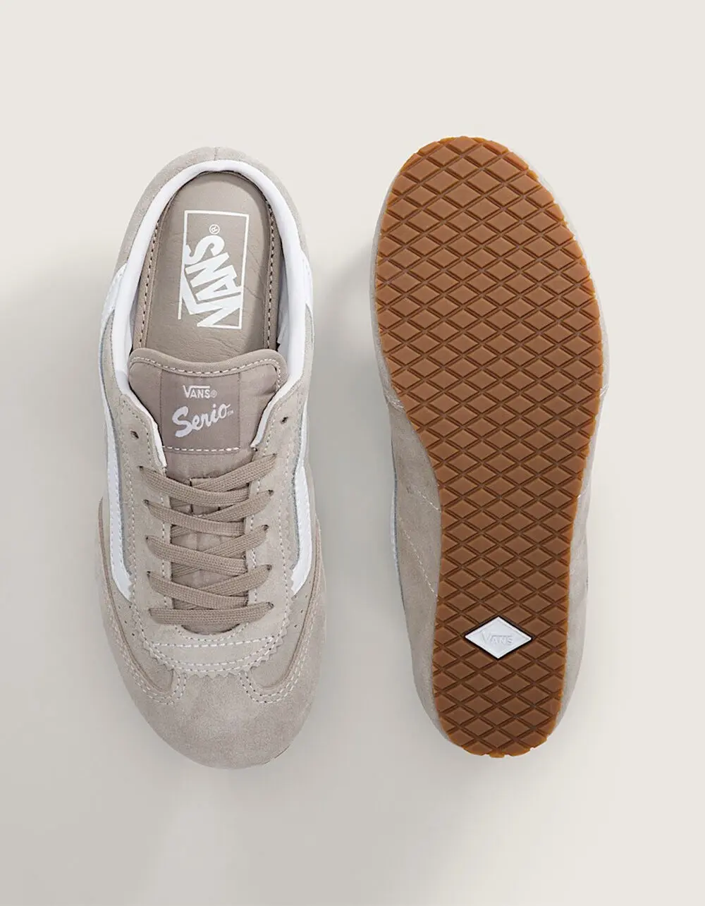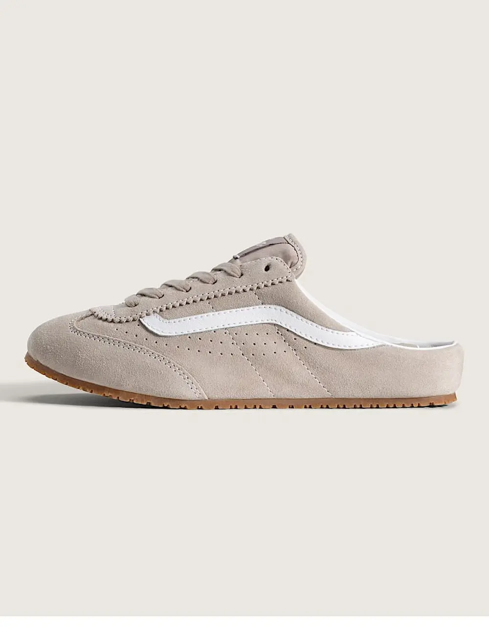 Vans Super Lowpro Mules. Low-profile, vintage track-inspired mule. Suede and nylon upper. Lace-up closure for an adjustable fit. Padded tongue adds comfort and support. Perforation details on the sides add texture and a retro touch. EVA midsole and wedge for lightweight cushioning and durability. Ortho. Lite foam insole for cushioning. Rubber outsole with vans' signature waffle pattern for superior grip. Heritage in. Serioin branding on the tongue. Imported.