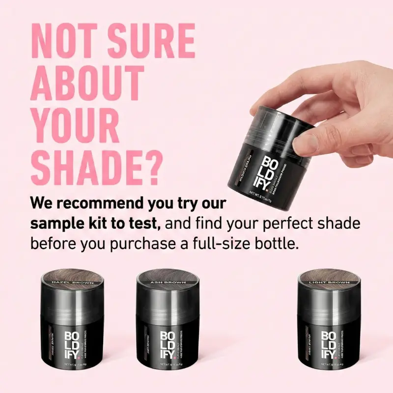 Try our Hair Fiber Sample Kit to test multiple shades before committing to a full size: