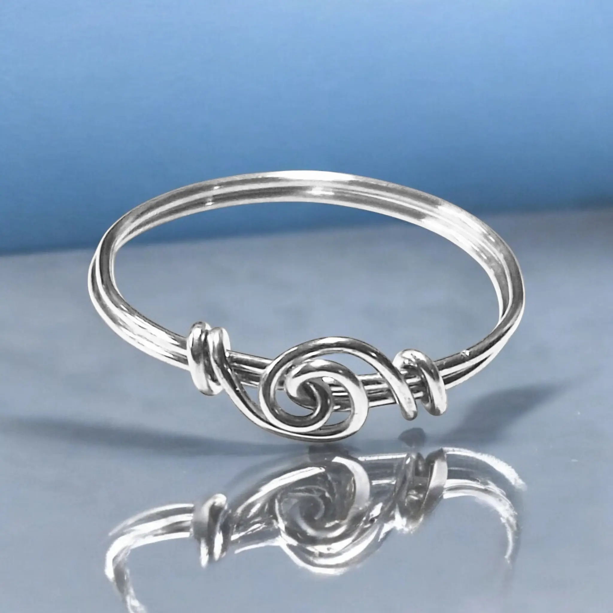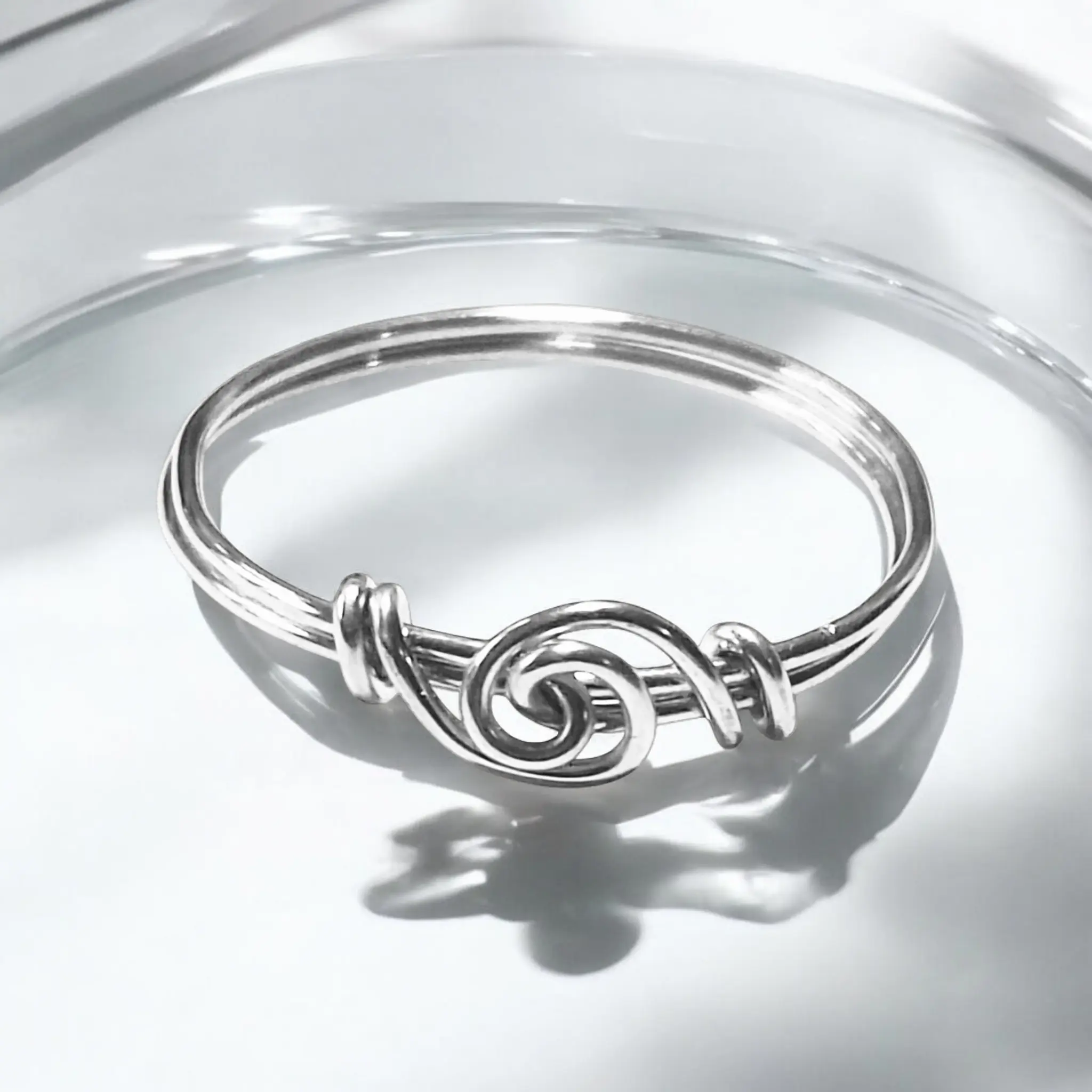 This unisex accessory is meticulously crafted by L. Jenkins Designs. It features a knot design, perfect for any occasion. Available in sizes 4 to 12, it fits comfortably on any finger. Crafted from sterling silver jeweler's wire, it exudes sophistication.