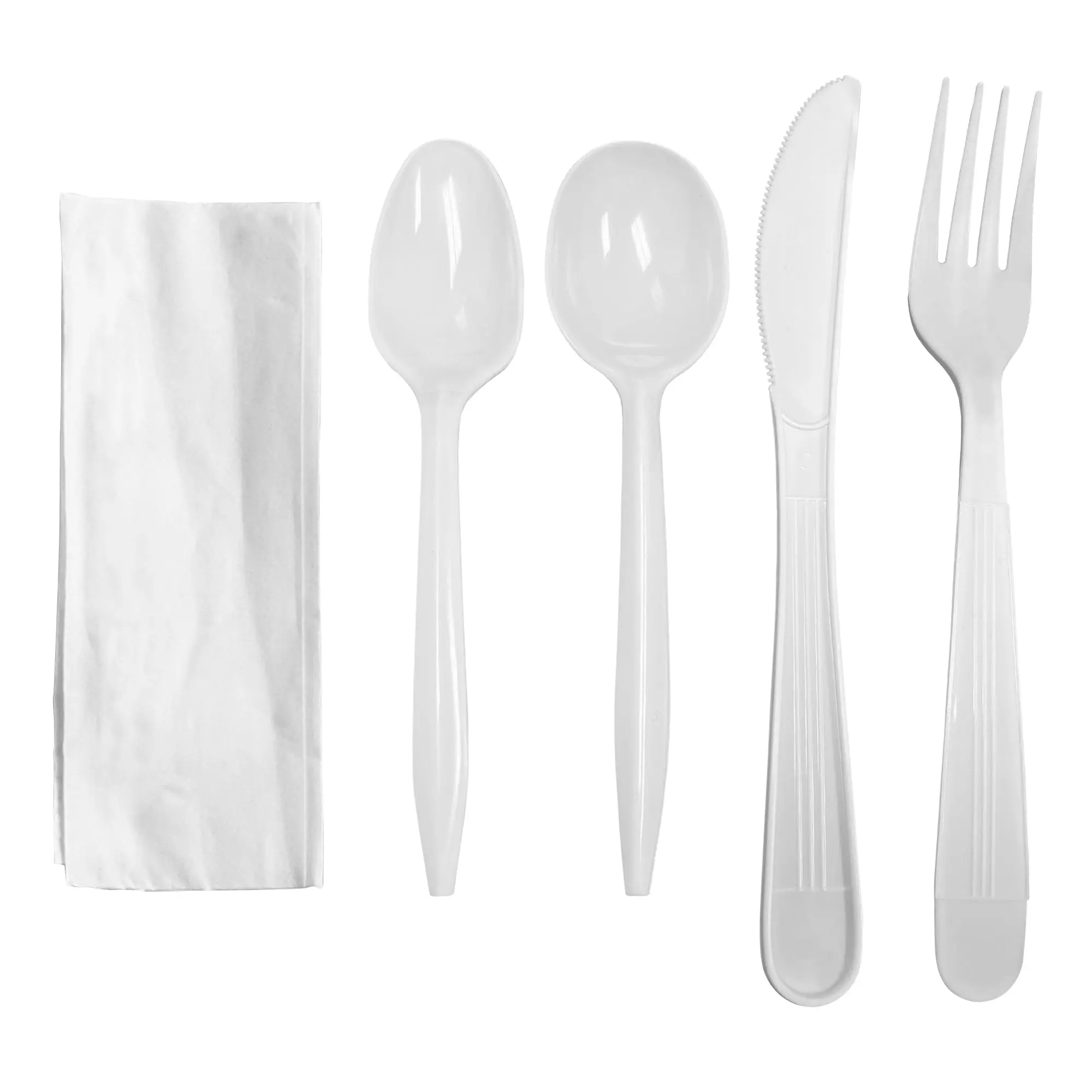 White Plastic Cutlery Set with Napkin - Fork, Soup Spoon, Knife, Teaspoon, Napkin