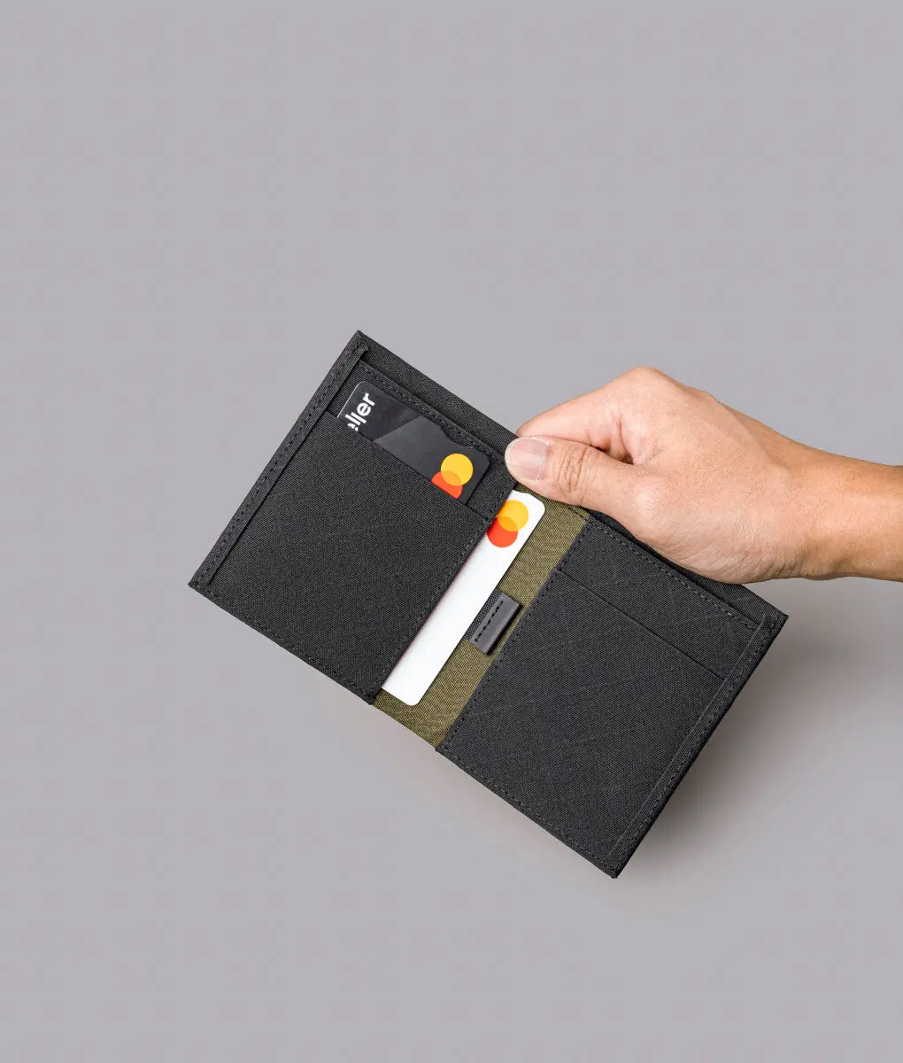 The ARK Bifold Cash Wallet delivers refined functionality in a streamlined silhouette. Crafted from our custom-developed Axogrid fabric, this weather-resistant wallet slides easily into any pocket. A dedicated cash sleeve holds flat bills, while an intuitive pull tab provides quick access to stacked card storage. There’s also a magnetic closure to keep your contents secure on the go. Perfect for those who appreciate considered everyday carry that performs well and looks great.