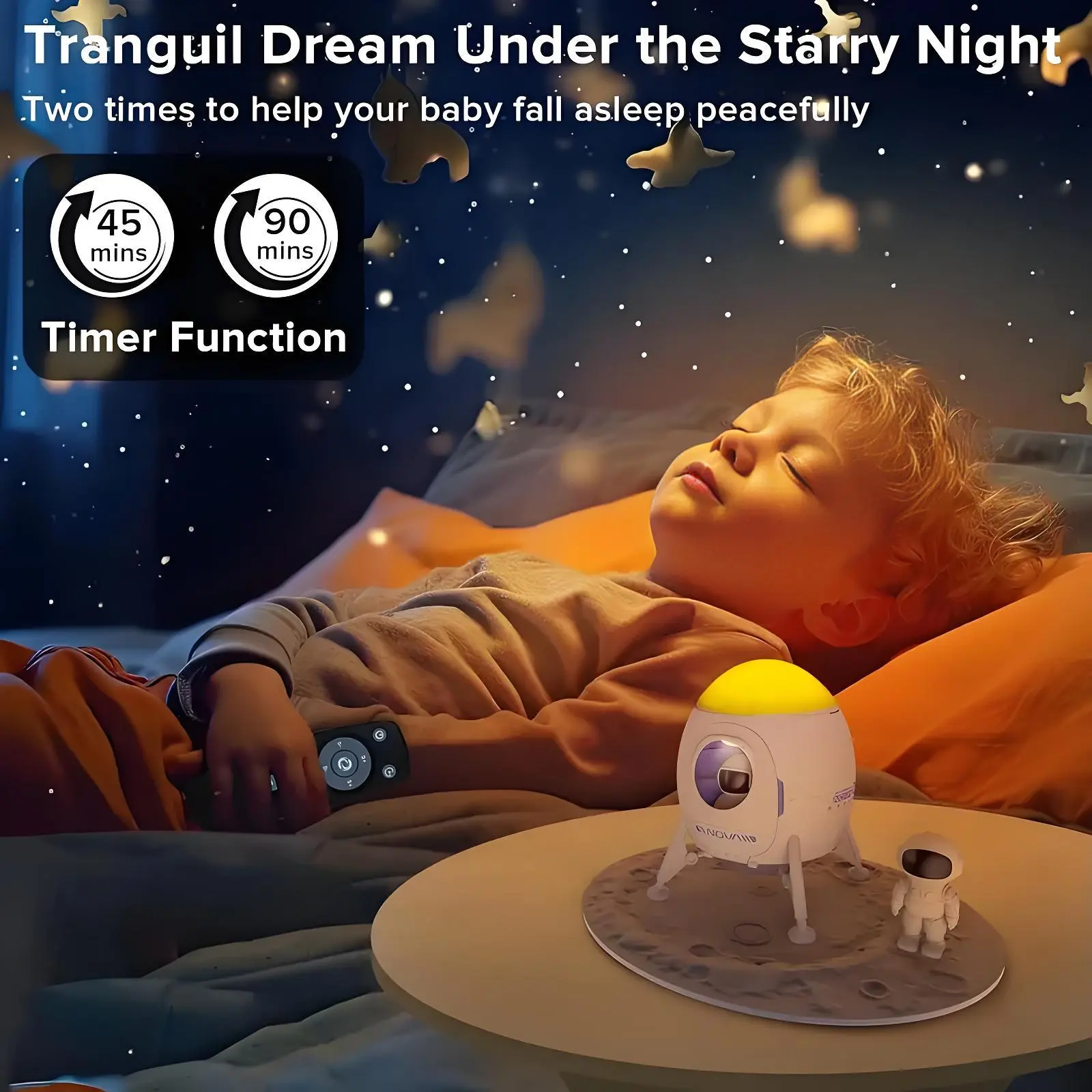 【Adjustable Brightness & Color Timer】:2 in 1 remote control with timer function and remote control function can not only adjust the brightness,color and speed of the nebula,the breathing rate of the stars,but also the 45 minutes/90 minutes timer function, which is very easy and convenient to operate. When you turn on this galaxy light projector before going to bed, you can enjoy the beautiful view of the nebula and let the starry sky accompany you to sleep.