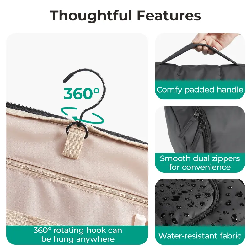·Versatile Use: Hangs on bathroom towel racks, doorknobs, or travel desks.