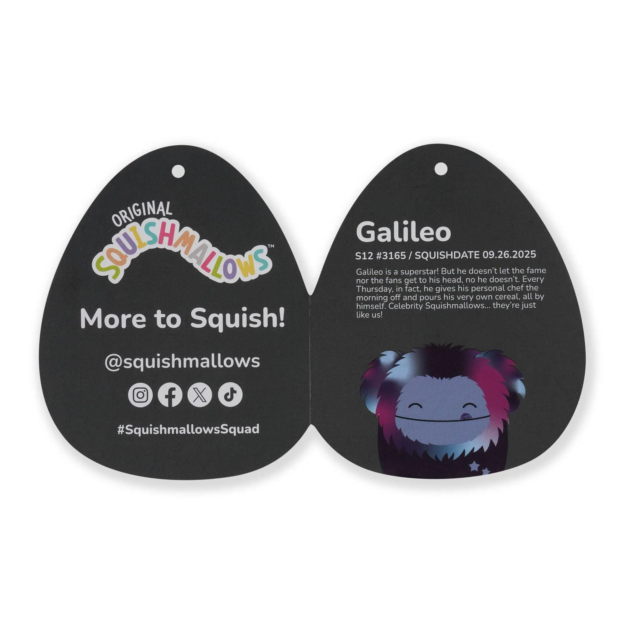 Say hello to Galileo the Galaxy Bigfoot, a cuddly companion from the Squishmallows 12-Inch Select Series. Each Squishmallows plush comes with its own unique name and fun bio, making it the perfect friend for long flights, cozy nights, or everyday snuggles.