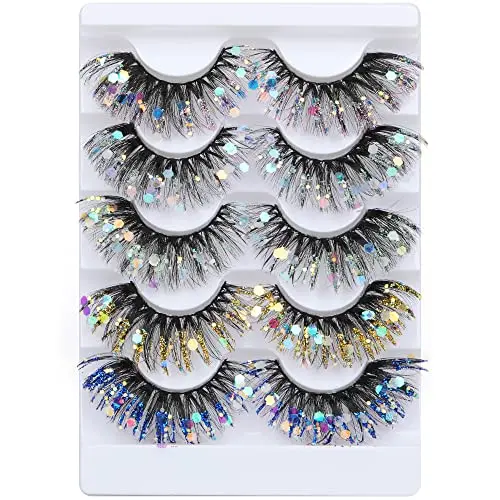 【Glitter Lashes】False eyelashes with DIY glitter make your eye makeup unique, There are 5 colored lashes you can choose, you will become the shining charcater in festivals, New year Party.