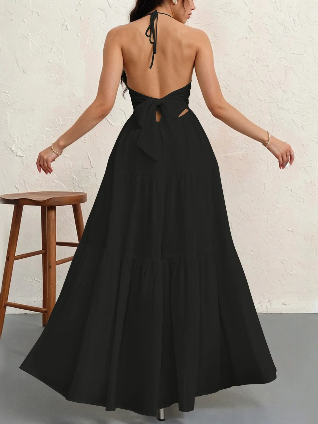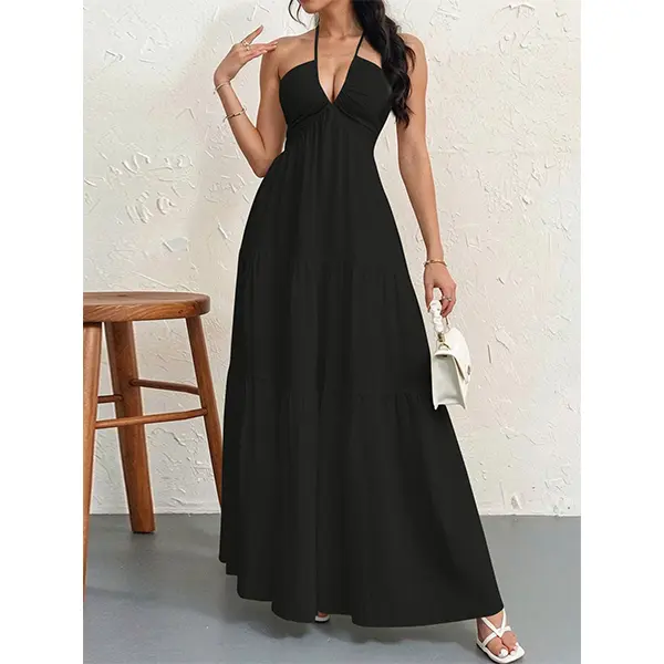 ·Halter Neckline: A sleek halter design with a deep V-neck adds a touch of allure while keeping you cool. The thin straps tie at the neck for a customizable fit.