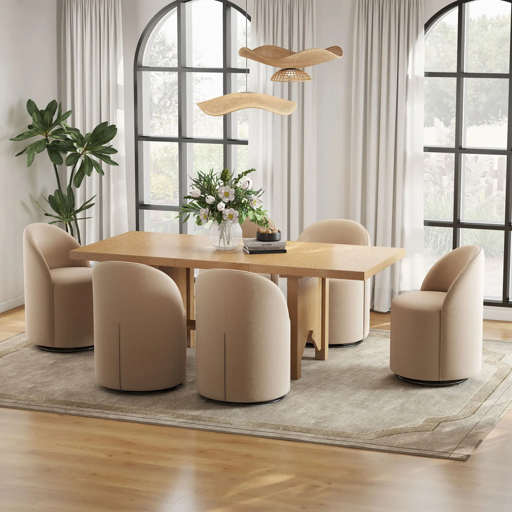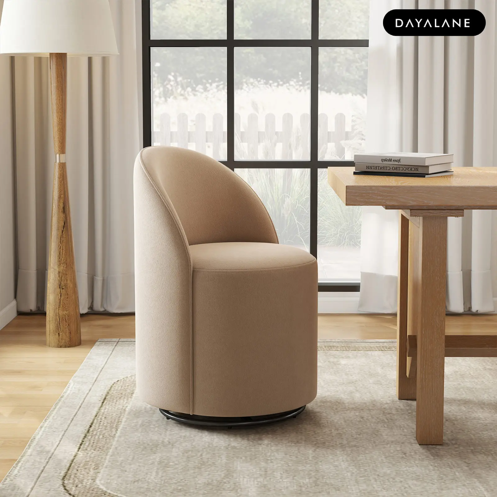 Designed for modern and small-space dining rooms, the Ryan swivel dining chair features a compact footprint and clean barrel-back silhouette. It fits easily around dining tables or open-plan layouts, offering flexible seating without crowding your space.