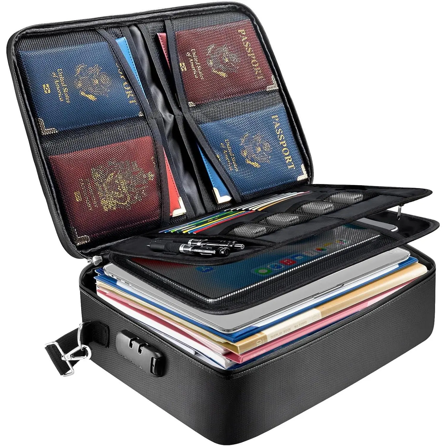 Unique Design: With a reinforced handle, an adjustable shoulder strap, and a luggage strap for secure attachment to your suitcase, this portable file box is perfect for travel, home, and office. It provides convenient and secure storage