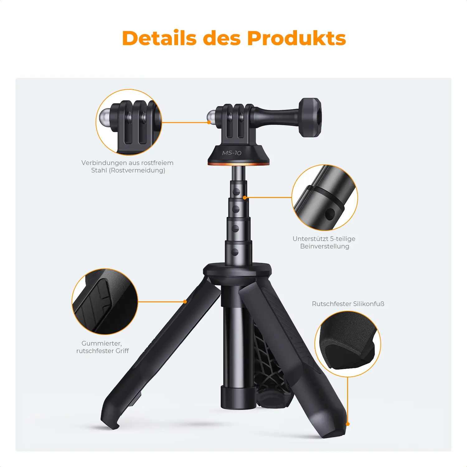 * This tripod head supports a load-bearing capacity of 2 kg and is suitable for the shooting needs of GoPro, DJI Osmo Action, and Insta 360 equipment.