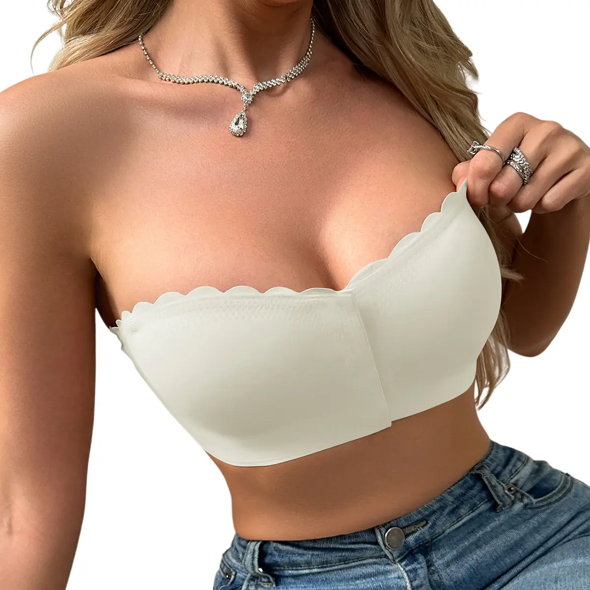 ·Stylish Front Closure Design: Seamless strapless bralettes featured a front closure design with wavy trim side on the top, which helps reduce back strain, front hook and eye closure for easy-off convenience, strapless design allows you to show off your shoulders and collarbone well, Very sexy and attractive!