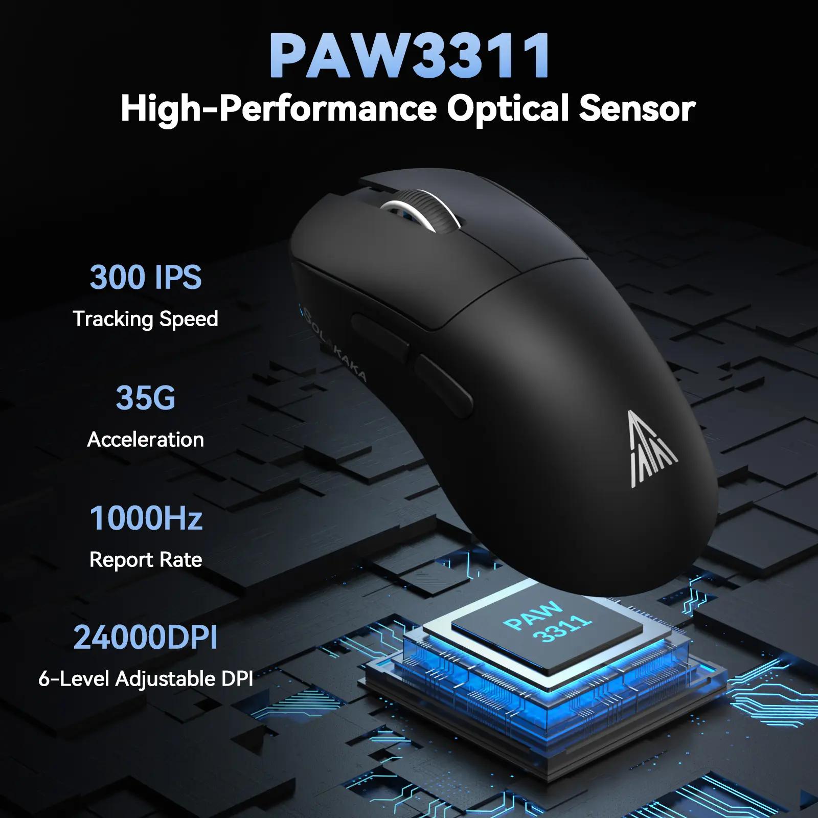 ·Professional PAW3311 Sensor: Our gaming mouse features a advanced PAW3311 optical sensor with a 300 IPS tracking speed, a 1000Hz response rate, and 35G acceleration. It also supports 6 adjustable DPI levels (800-1600-2400-3200-6500-12000). The software allows for fine adjustments within a ±100 range and supports a maximum adjustable DPI of 24,000. The fast response speed and precise clicking provide a pleasant experience whether for work or gaming.