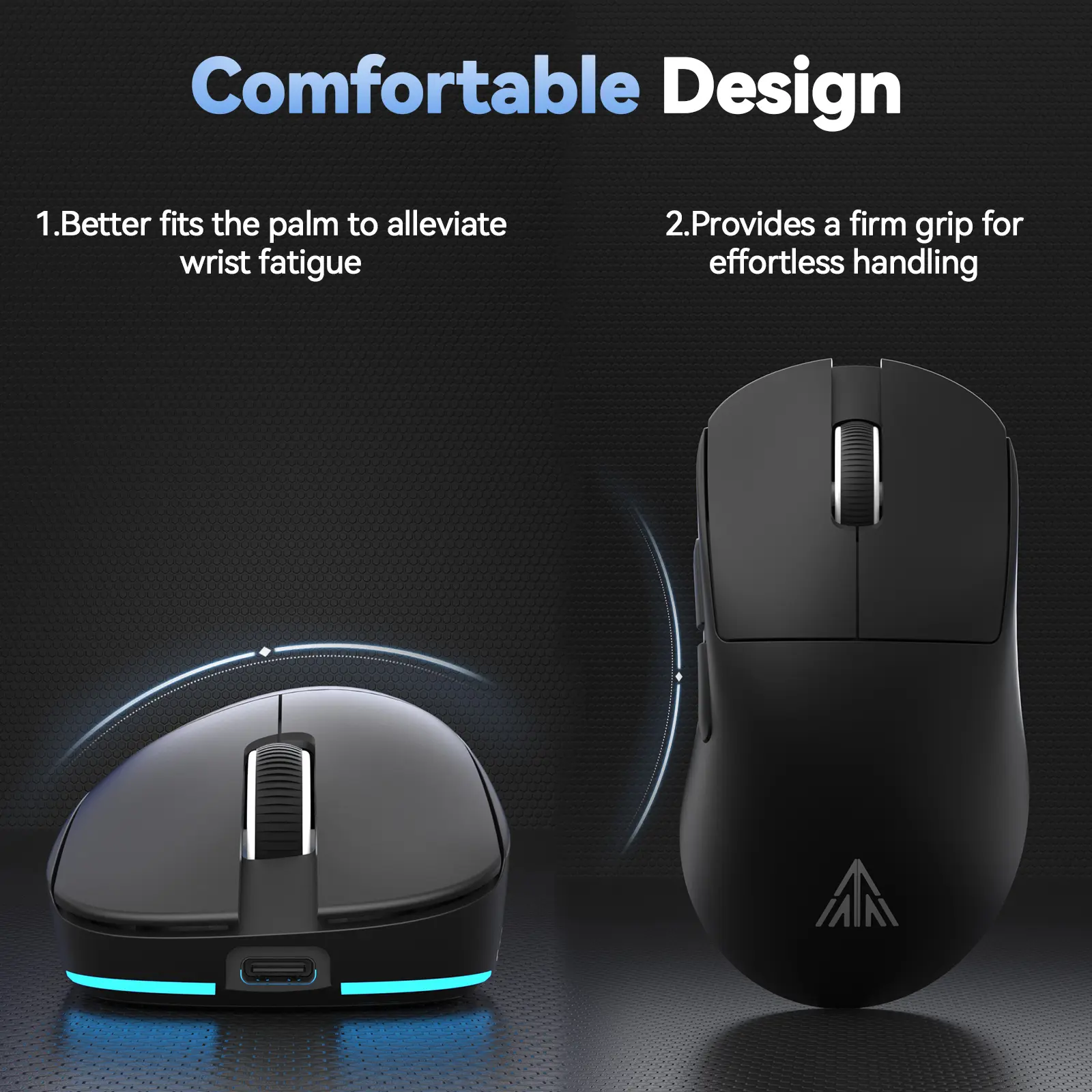 ·62g Lightweight Gaming Mouse: The SM822 superlight mouse features a lightweight design, weighing only 62 grams. This not only reduces wrist strain during prolonged mouse use but also makes it easy to carry. In addition, this laptop mouse utilizes a comfortable and sleek design. The tapered waist design on the sides provides a stable grip point for the palm. The top's contoured design conforms to the palm, reducing wrist fatigue. This greatly improves comfort and stability.