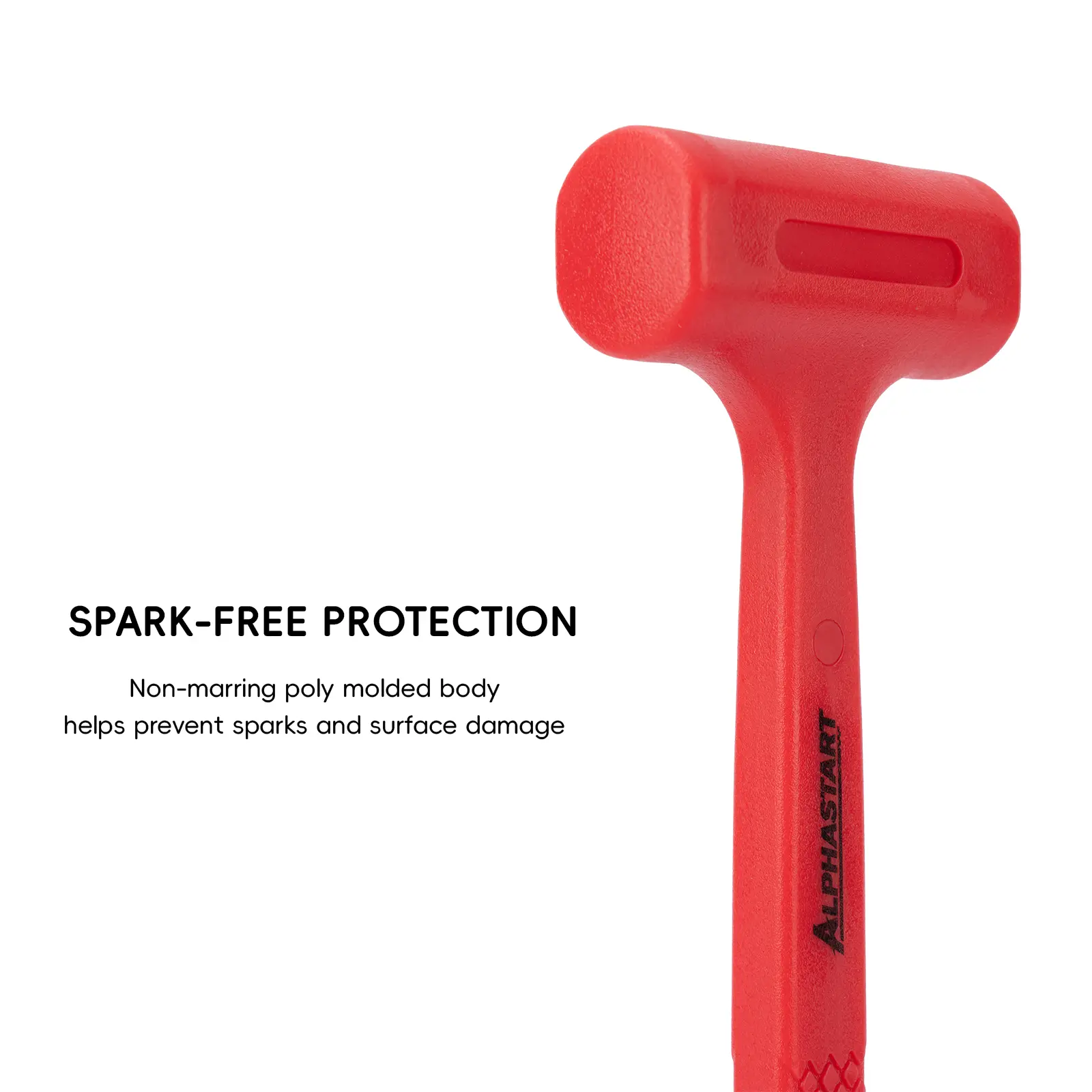 Rubber-coated head protects delicate or finished surfaces from damage, while spark-resistant material makes it safe for use around metal and sensitive environments.