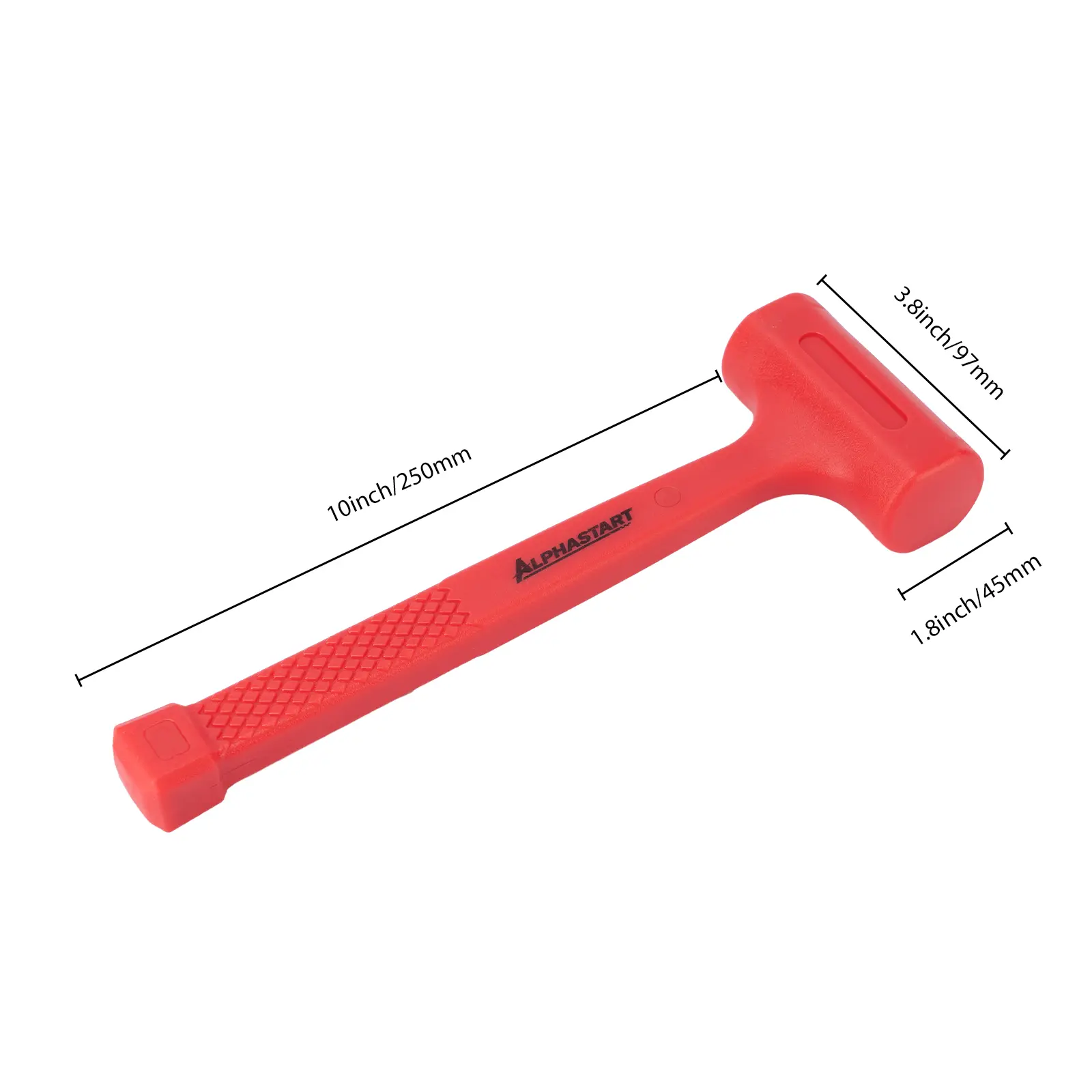 One-piece poly molded body prevents separation between head and handle, resists wear over time, and reduces noise on impact for safer, quieter operation.