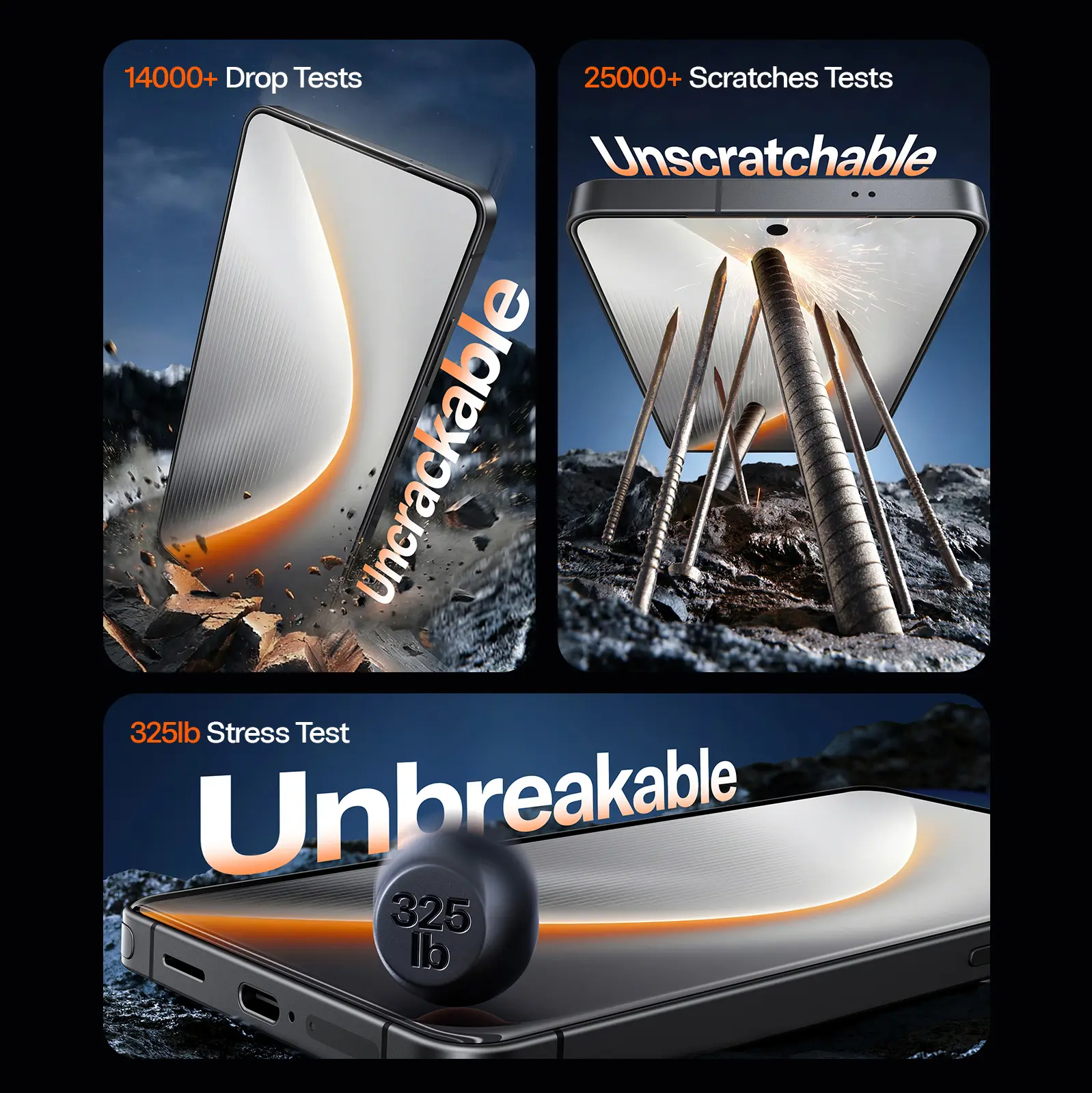 ·[Only Us - Our Own Lab, Defining New Standards] Meeting the industry's highest testing standards. Tested through 14,000+ drop tests (0 cracks), 25,000+ scratch tests (0 scratches), 325lb stress test (0 broken), and rigorous wear tests. Certified to meet MIL-STD-810H military standards (2026), giving you complete peace of mind against any daily accidents.
