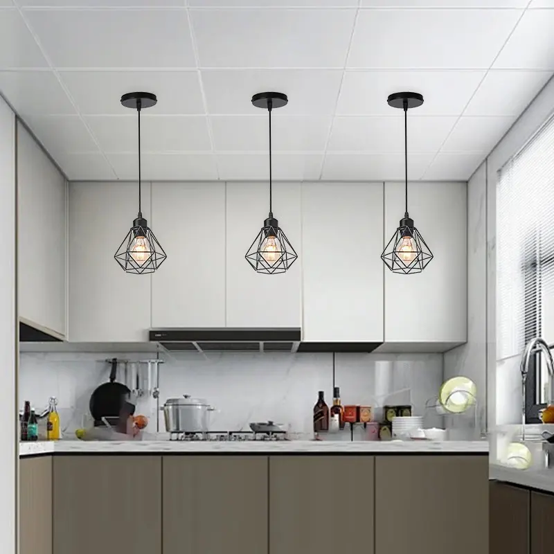 Modern Minimalist Pendant Light, Hexagonal Cage Ceiling Lamp, Industrial Metal Adjustable Lantern, Vintage Style for Restaurant Bedroom Cafe Living Room Shop