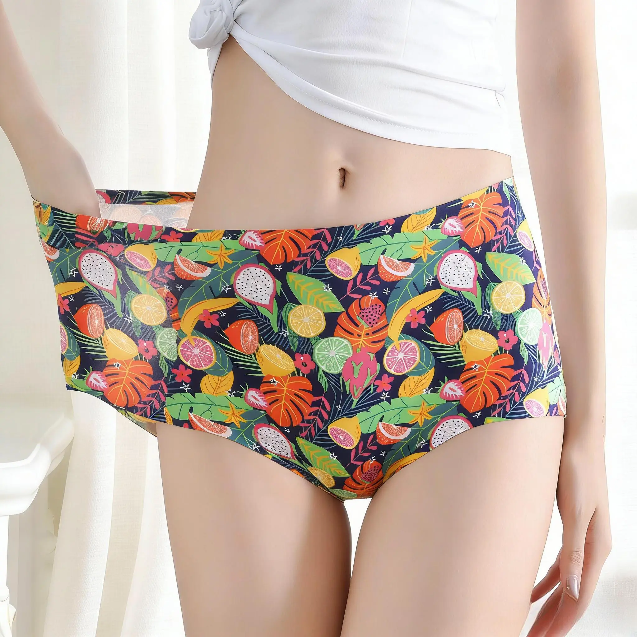 Women's Plus-Size Nylon Panties, Featuring trendy and avant-garde prints—including tropical fruits, classic little yellow ducks, sexy lip marks, and elegant botanical patterns—these full-coverage briefs are tailored specifically for plus-size women.