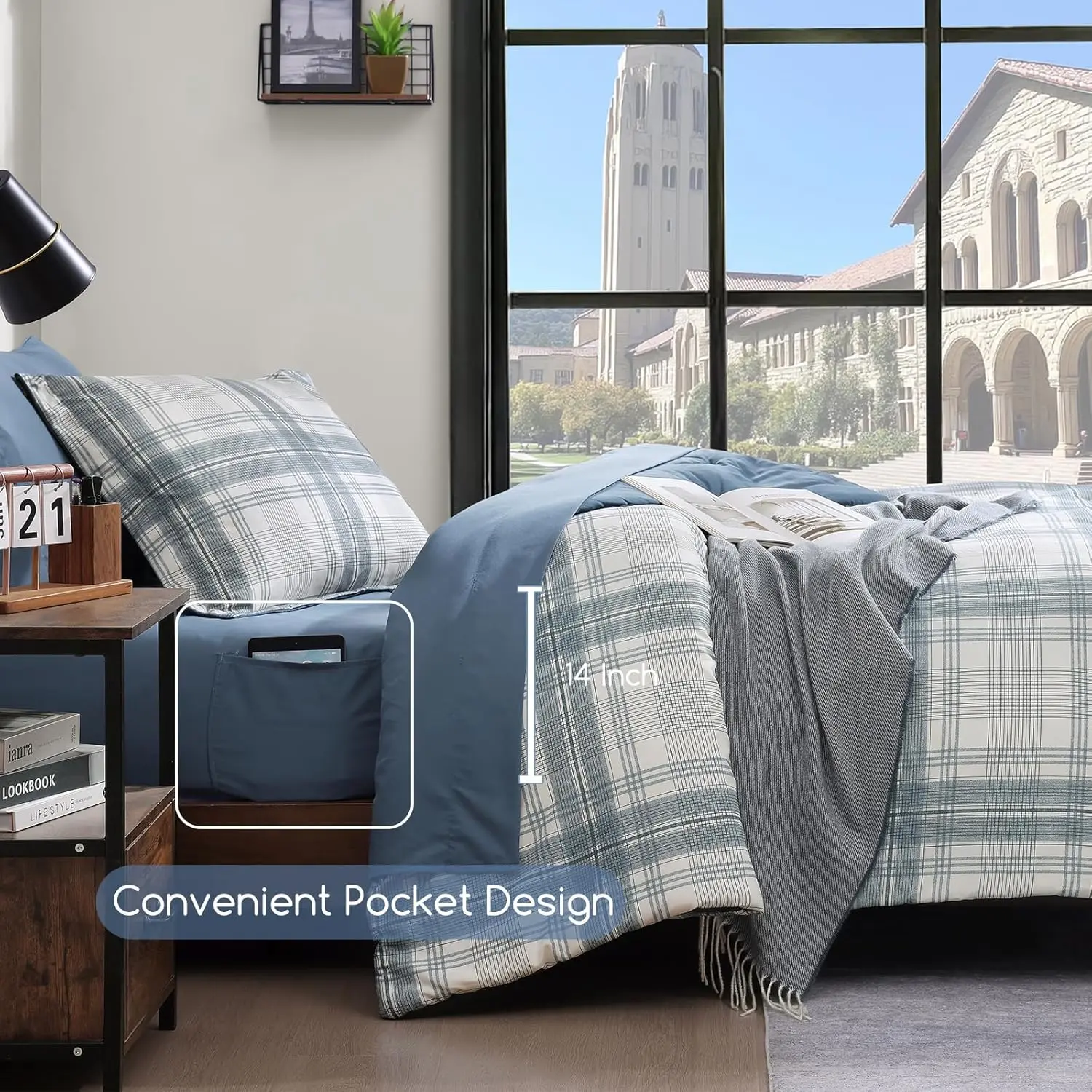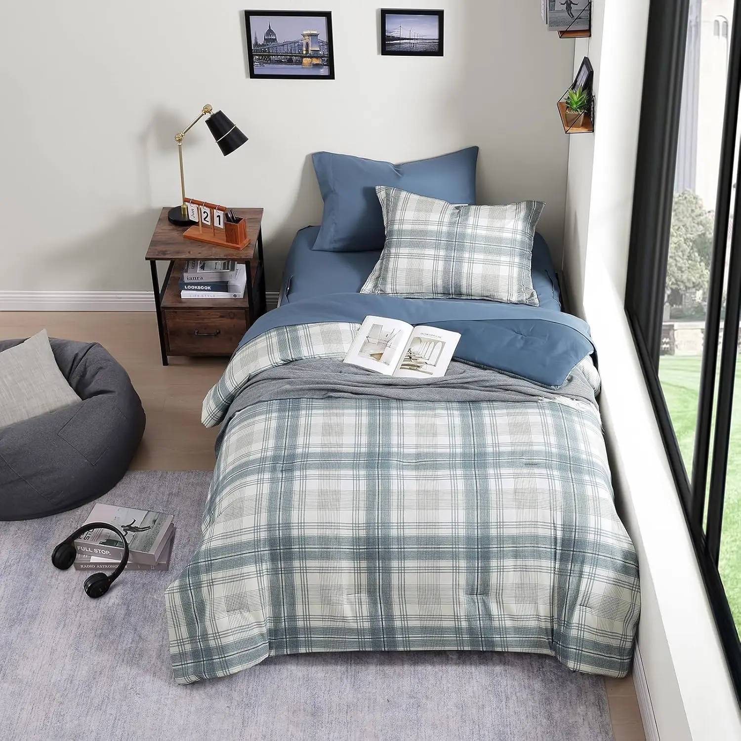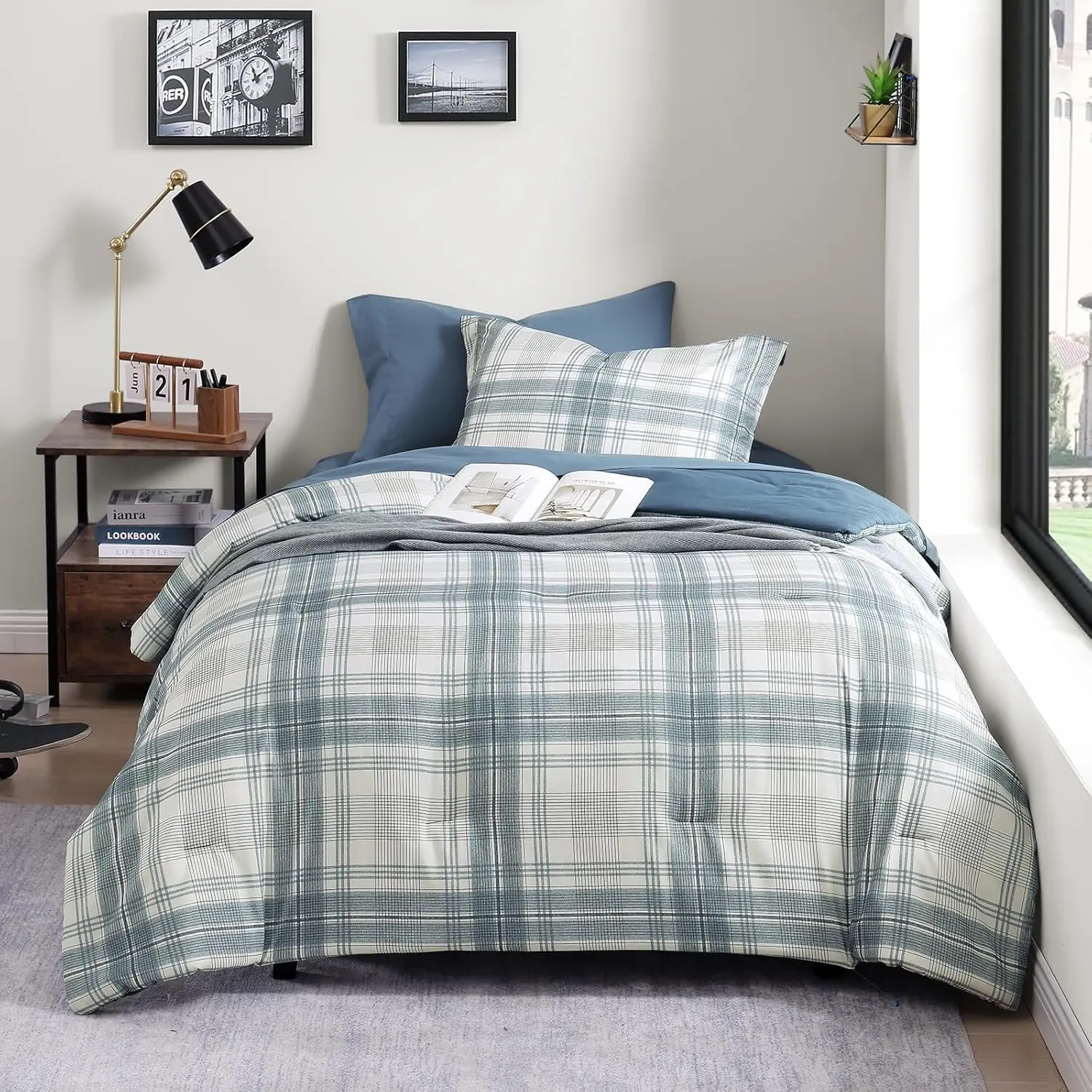 [Classic Plaid Bedding Set]Tailored from breathable and durable polyester with lofty fill, our twin comforter set with sheets is washed for an excellent softness, lived-in bed set look for boys and girls.The preppy bedding design features a classic woven plaid with a textured print for a modern country-homestead feel.Super suitable for casual dorm bedding sets or coastal comforter sets.
