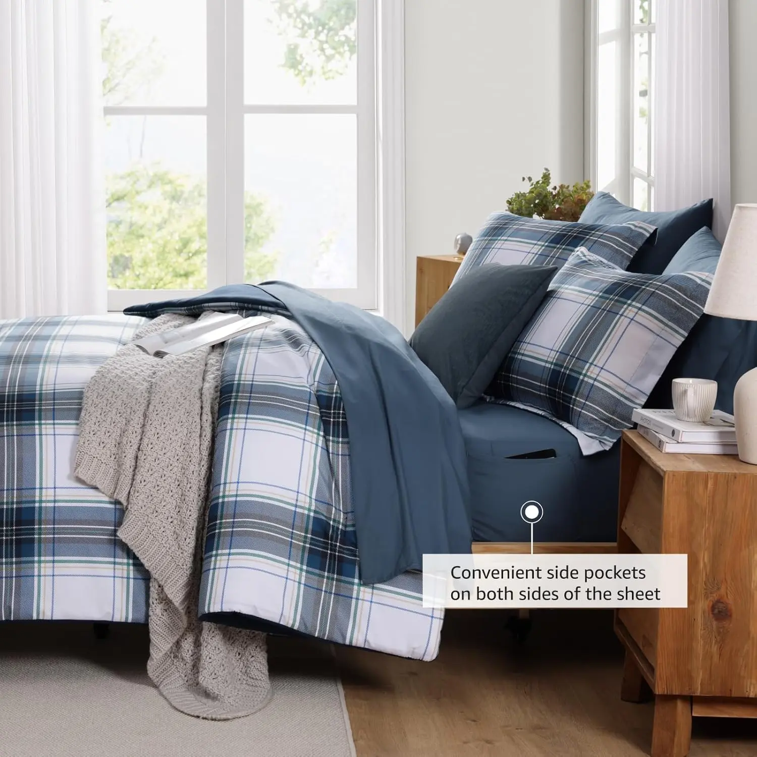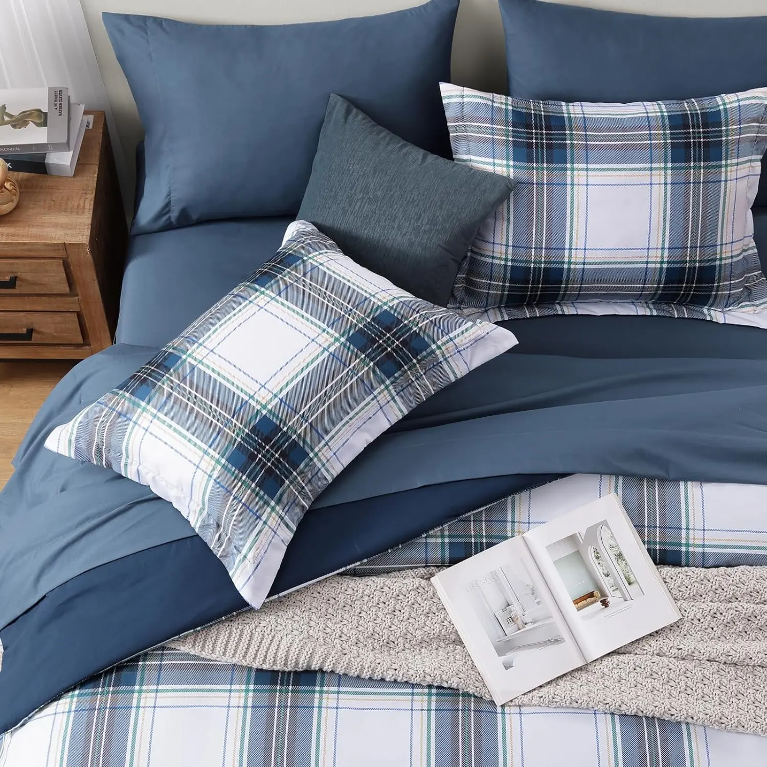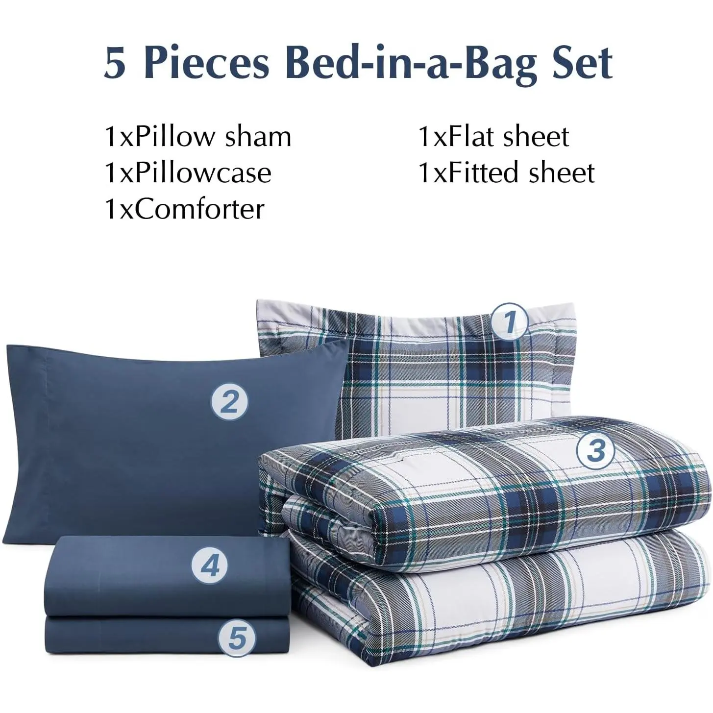 Plaid Design: Upgrade your bedroom decoration with our plaid twin xl comforter, endows it with classic nobleness and coziness.Fitted sheet is designed with a storage pocket, which is convenient and practical.(NO DECO PILLOW)