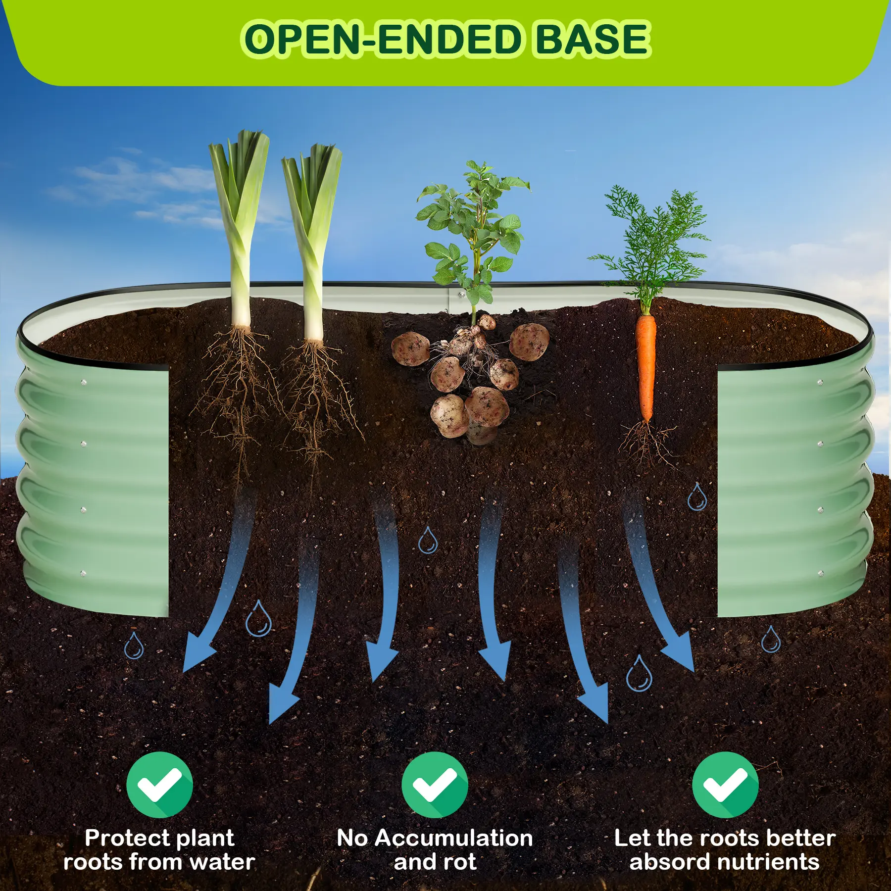 ·3.🌱【STURDY OVAL DESIGN & STABILITY】 Reinforced oval structure with overlapping panels (up to 1.8mm thickness) and screw-fastened edges create a rigid structure that maintains its shape even when filled with heavy wet soil.