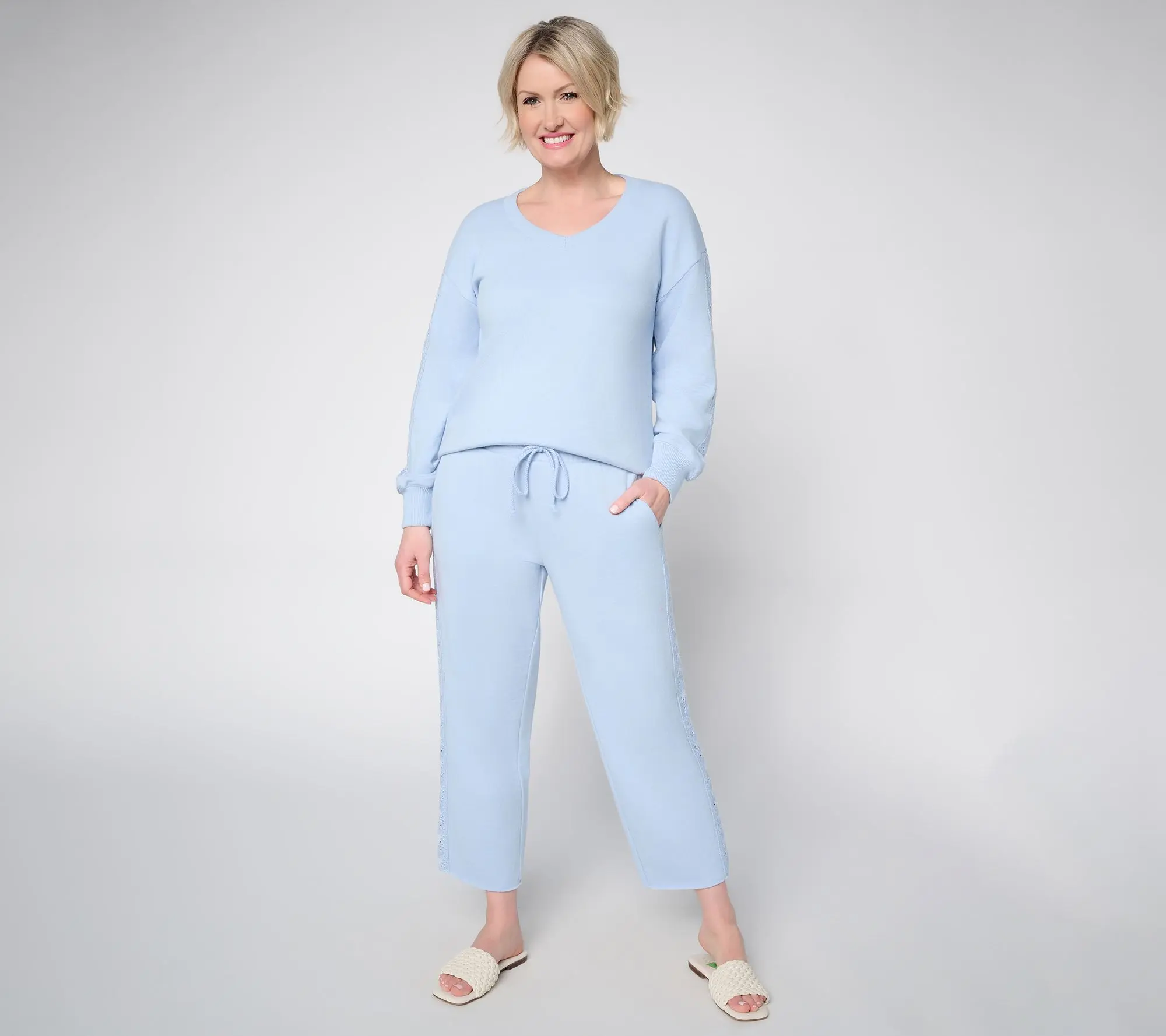 Peace Love World Boheme Petite Cropped Pants with Crochet Trim