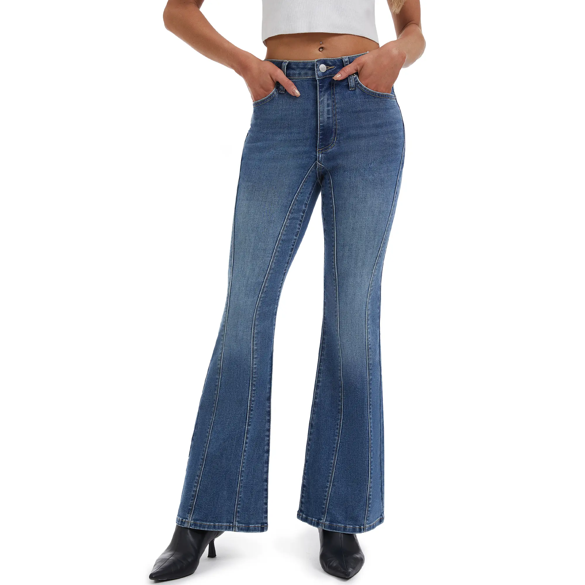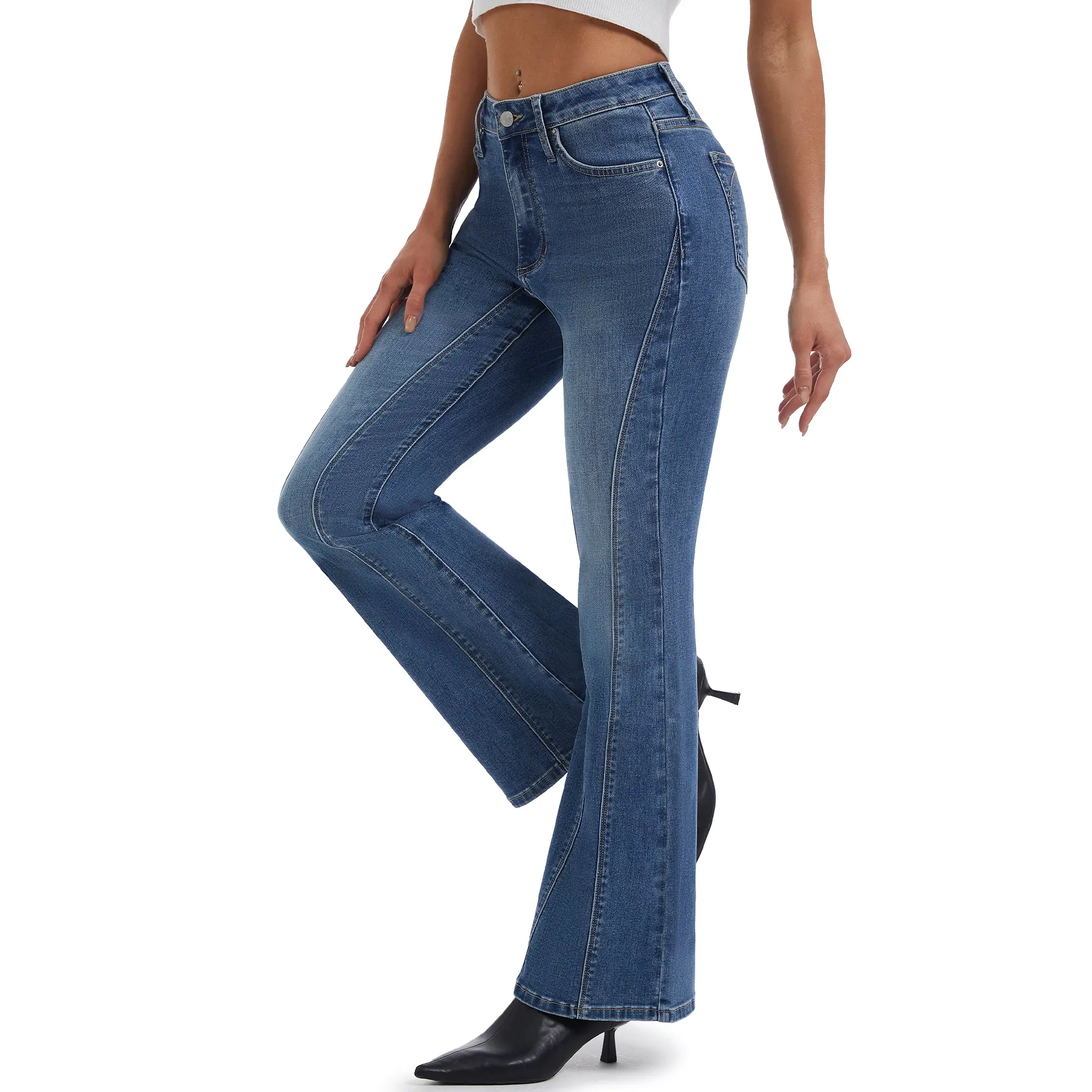 YUCOLEN flared jeans are made from high-quality stretch denim, providing freedom of movement whether sitting or squatting. The fabric is soft, lightweight, and breathable, reducing pressure and enhancing comfort, while maintaining a flattering shape all day long.