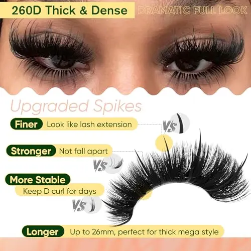 Trendy Spike Design: Featuring sharp spike cluster eyelash extensions with spikes that follow the latest spike lash extension trend, these spike individual lashes add striking dimension to your eyes, making them perfect for creating bold, editorial-worthy eye looks mega styke that stand out on social media and special occasions