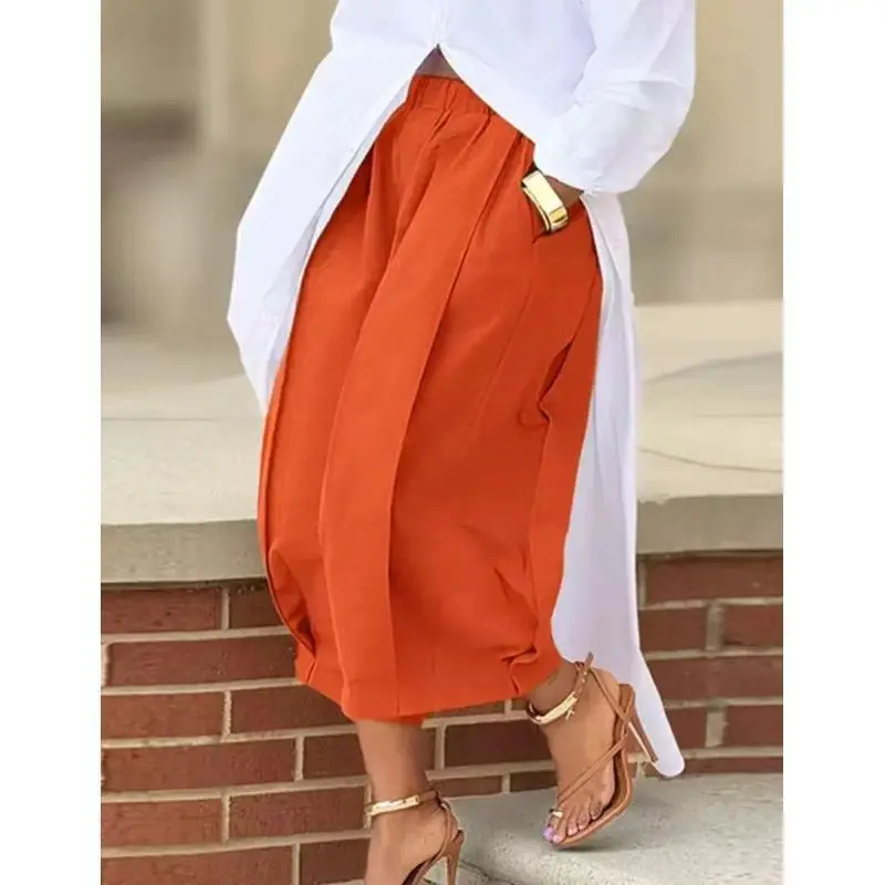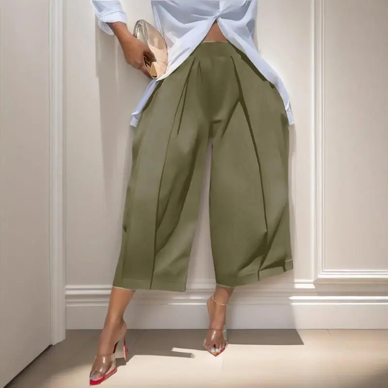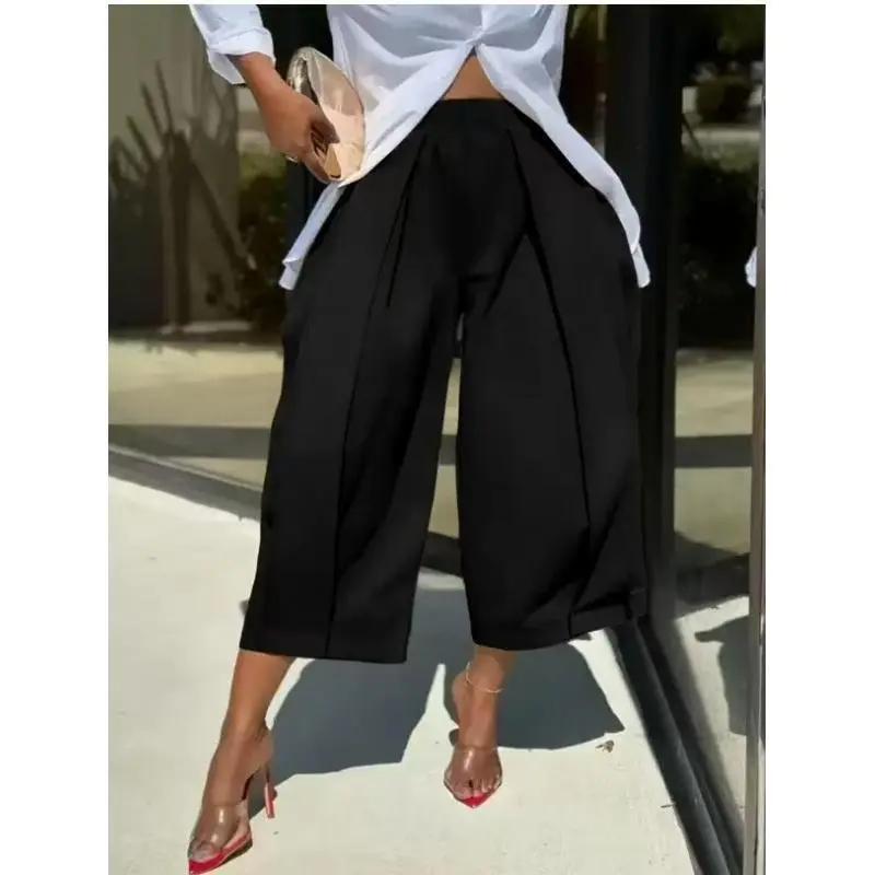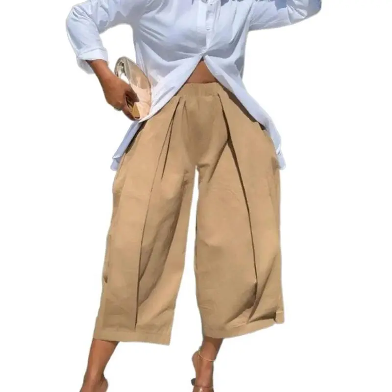 5. Women's Loose Solid Color Capri-Pants Cropped Trousers, 100% Cotton Summer Comfortable Breathable Fabric, Daily Versatile Elastic Waistband Lantern Pants with Pockets Bottoms Womenswear Casual Bridal Basic Minimalist