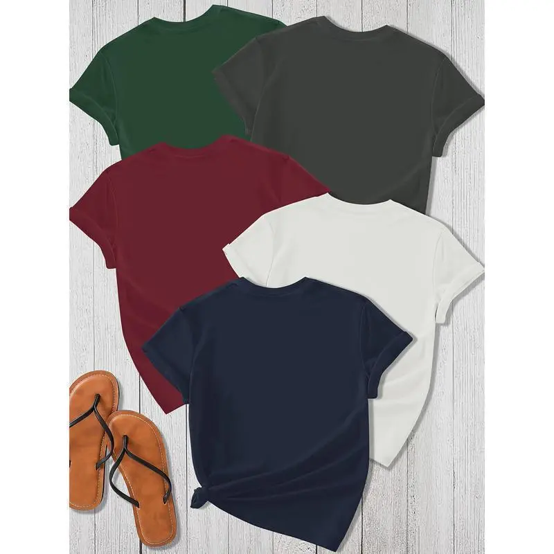 5-Pack Women'S Cotton T-Shirts - Casual Crew Neck, Solid Color, Short Sleeve, Regular Fit, Woven Pullover Tops - Versatile All Seasons Womenswear Basic