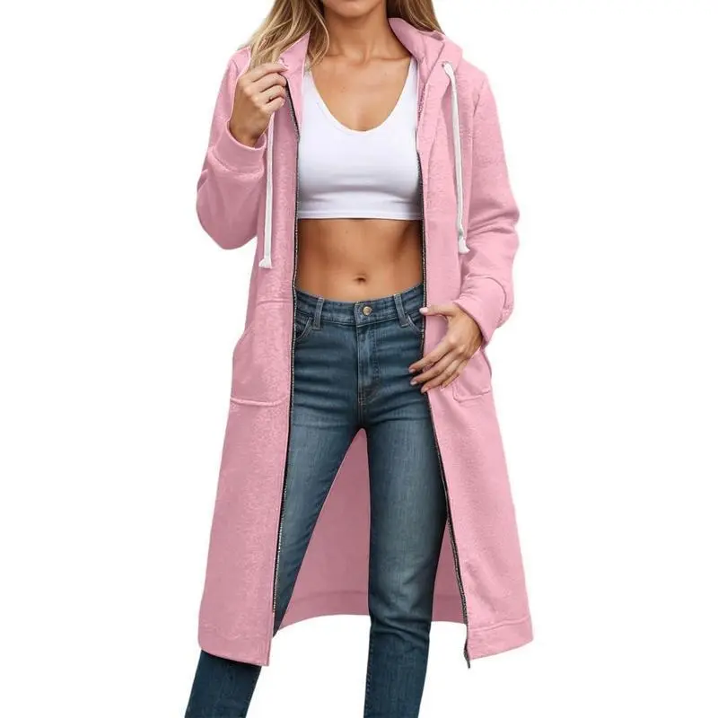 Women'S Zip Up Hoodies Oversized Fleece Long Tunic Sweatshirts Casual Long Sleeve Fall Hoodie Jacket Coat With Pockets Comfy Womenswear Drawstring Soft