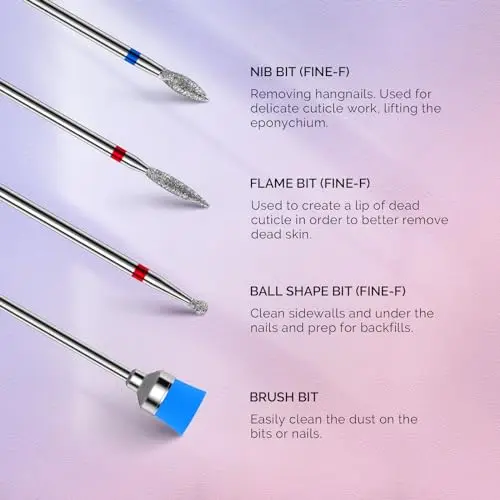 Professional Cuticle Nail Drill Bits: Comes with 1pcs ball bit and 2pcs flame bits, which are made of premium diamond metal, allowing you to prepare the nail bed, clean the cuticle area, shape and shorten the nail, smoothly remove on the surface, drill nail holes, and so on.